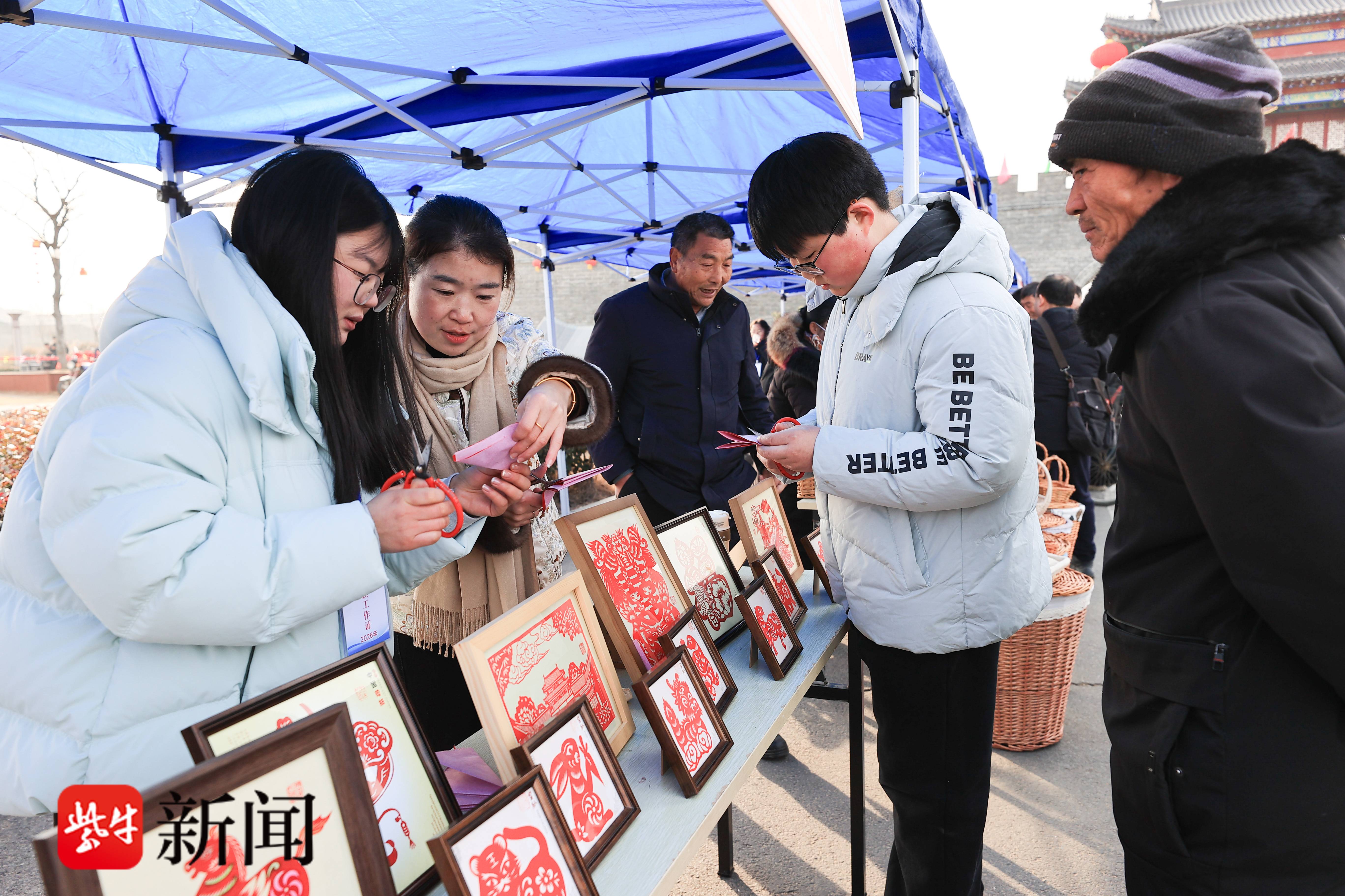非遗贺春,文化送福。文化展示区成为现场“打卡热点”,剪纸、柳编等非遗技艺现场展示,剪纸艺人指尖翻飞,一张张寓意吉祥的剪纸作品跃然纸上;柳编匠人巧夺天工,一件件精致的柳编器物尽显魅力,吸引众多村民驻足观赏、啧啧称赞。六位书法家现场凝神运笔、泼墨挥毫,笔走龙蛇间,一幅幅寓意吉祥的马年春联跃然纸上,墨香氤氲中,村民们捧着心仪的春联喜笑颜开,将满满的年味与祝福带回家中。城门春联与手写春联相映成趣,非遗技艺与乡土文化相得益彰,为即将到来的新春佳节增添了浓厚的文化氛围,进一步增强了群众的文化归属感与幸福感。