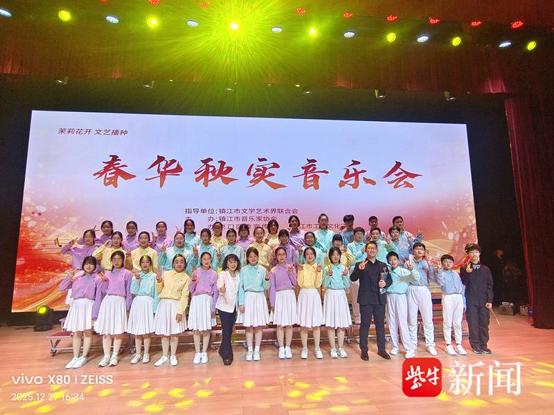 该校梦溪合唱团作为校园艺术名片之一,活跃于各类高水平艺术实践平台。2024年12月27日,合唱团参加由京口区委宣传部,镇江市音乐家协会组织的“春华秋实”新年音乐会;2025年1月31日,又受邀登上了“江韵润童心,弦歌贺新春”镇江市中小学生新春音乐会的舞台。两次演出,合唱团成员们以饱满的热情、和谐的声部、深情的演绎,赢得了现场观众的热烈掌声和业界的一致赞誉。这些宝贵的舞台经历,不仅是对合唱团日常训练成果的检验,更是对学生团队协作精神、艺术修养和舞台表现力的综合锤炼,让美育在真实的艺术实践中浸润心灵、涵养情操。