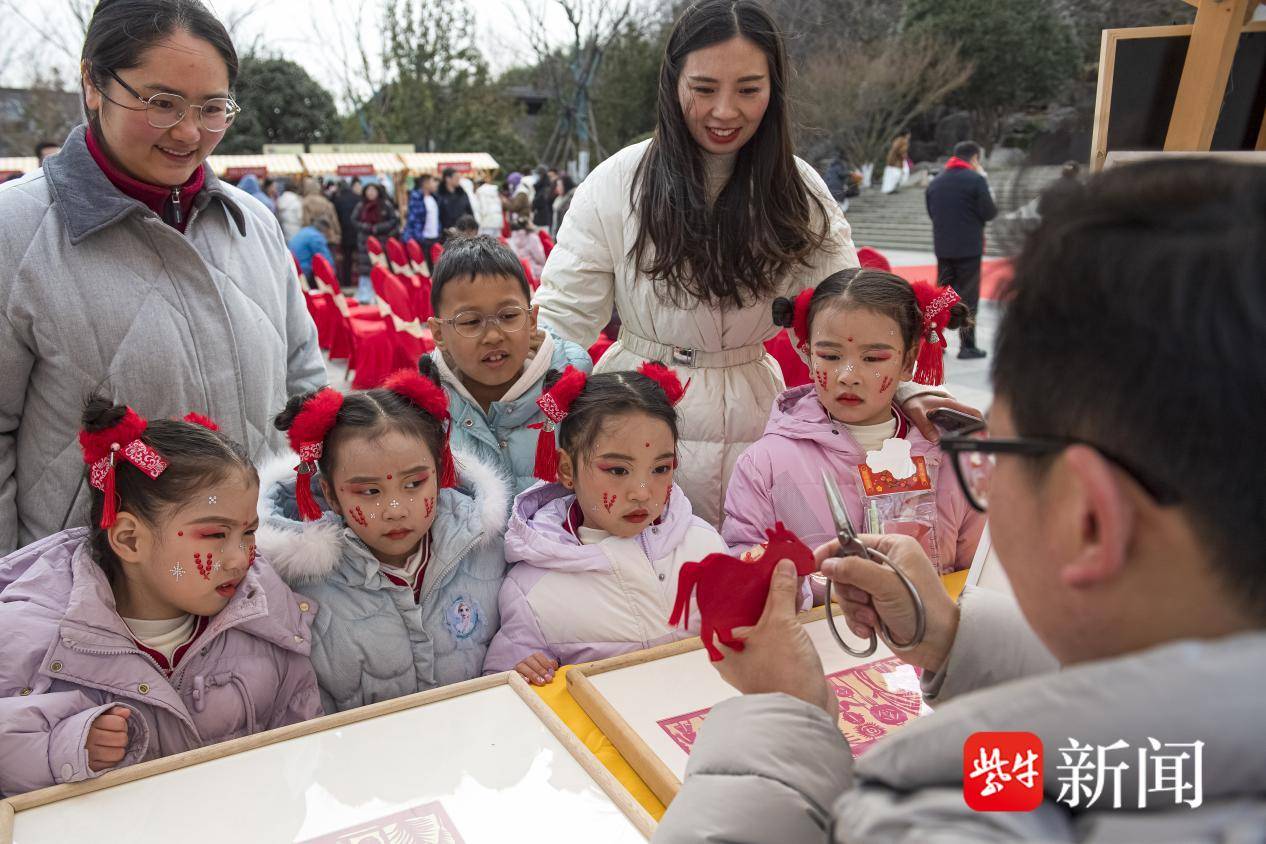 舞台一侧的互动体验区更是人气爆棚。云龙区书法家协会的名家们挥毫泼墨,将一副副饱含“龙马精神”“万事如意”等祝福的春联与福字送到市民手中;非遗展示区里,剪纸、面塑等传统技艺引得市民驻足,尤为引人注目的是为张艺兴单曲《大花轿》创作封面的徐州剪纸传承人刘冠玉,他带来多幅以马为主题的创意作品,笔墨间尽显马年精气神,让市民感受到传统技艺与现代潮流的碰撞;云龙区新时代文明实践中心志愿者化身“文明使者”,通过互动宣讲推进移风易俗,让新风尚浸润人心。中国银行徐州分行搭建的金融知识趣味游戏区同样热闹,玩飞盘赢金融知识小礼品、大转盘小挑战等互动项目,让市民在欢声笑语中学习金融知识,现场氛围热烈而温馨。