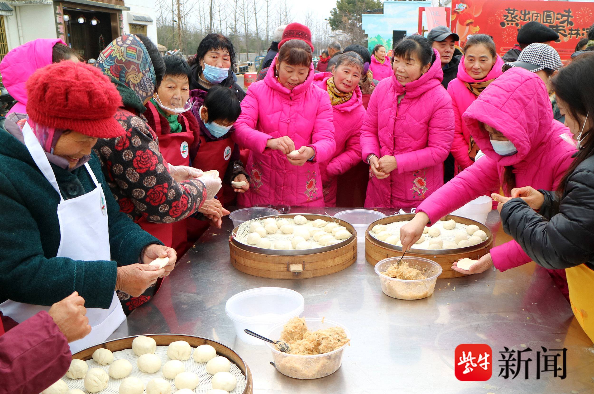 记者了解到,枣林湾园区拥有“三山、五湖、两泉、一河”自然禀赋,建有全国规模靠前的扬州芍药园种植基地。园区2021年举办扬州世界园艺博览会,已建成红山体育公园、扬州芍药园等40多个项目。 当日活动以“蒸出团圆味·情聚枣林湾”为主题,从上午9点持续至下午5点,吸引了众多市民和游客前来体验传统年俗,提前感受新春氛围。活动现场设置了年蒸体验区,不少亲子家庭参与和面、包馅、点红等制作环节,亲手完成充满年味的馒头。趣味互动游戏与传统年货集市也聚集了人气,市民在欢声笑语中挑选农家特产,沉浸式感受民俗魅力。