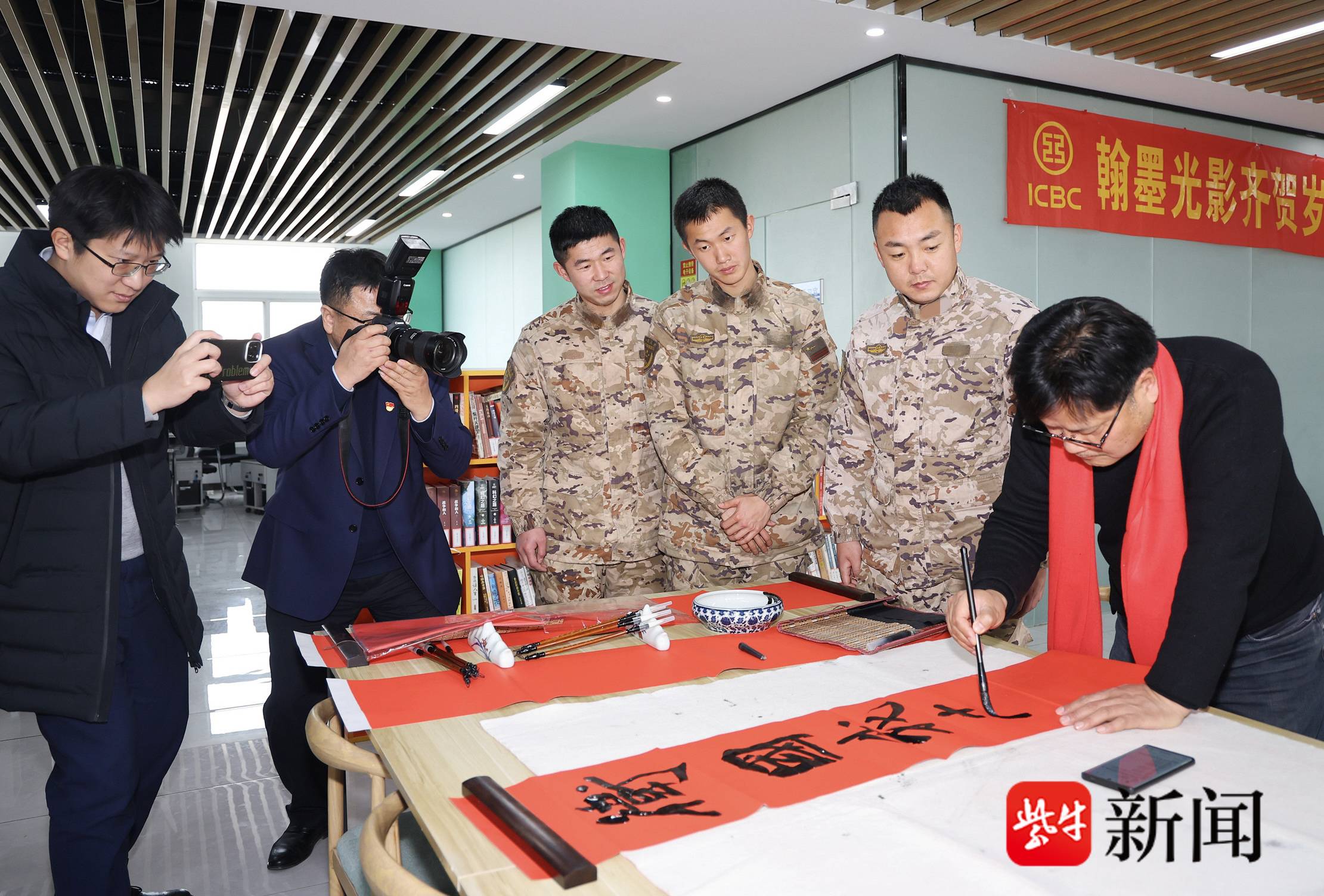 扬子晚报网2月7日讯(通讯员 赵红伟 记者 陈咏)5日,工商银行扬州分行志愿服务队携手市书法家、摄影家协会走进军营,开展“翰墨光影齐贺岁 军民同心共迎春”拥军志愿服务活动。大家为部队官兵送上别具特色的节日问候与暖心服务,以实际行动深化新时代军民鱼水情谊,践行金融为民、服务社会的责任担当。