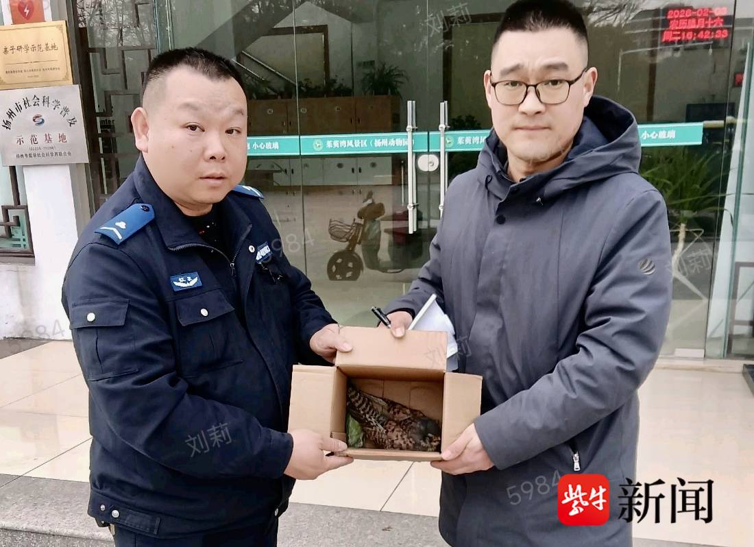 扬子晚报网2月7日讯(通讯员 江公 记者 陈咏)本周,扬州市公安局江都分局真武派出所迎来一对特殊的“访客”——一位父亲带着年幼的儿子,小心翼翼地捧着一只羽毛凌乱、神情焦躁的猛禽走进值班室,它的利爪仍紧紧抓着一只小鸟,这是它捕获的猎物,但它因伤无法振翅高飞,只能发出低沉而急促的鸣叫声。