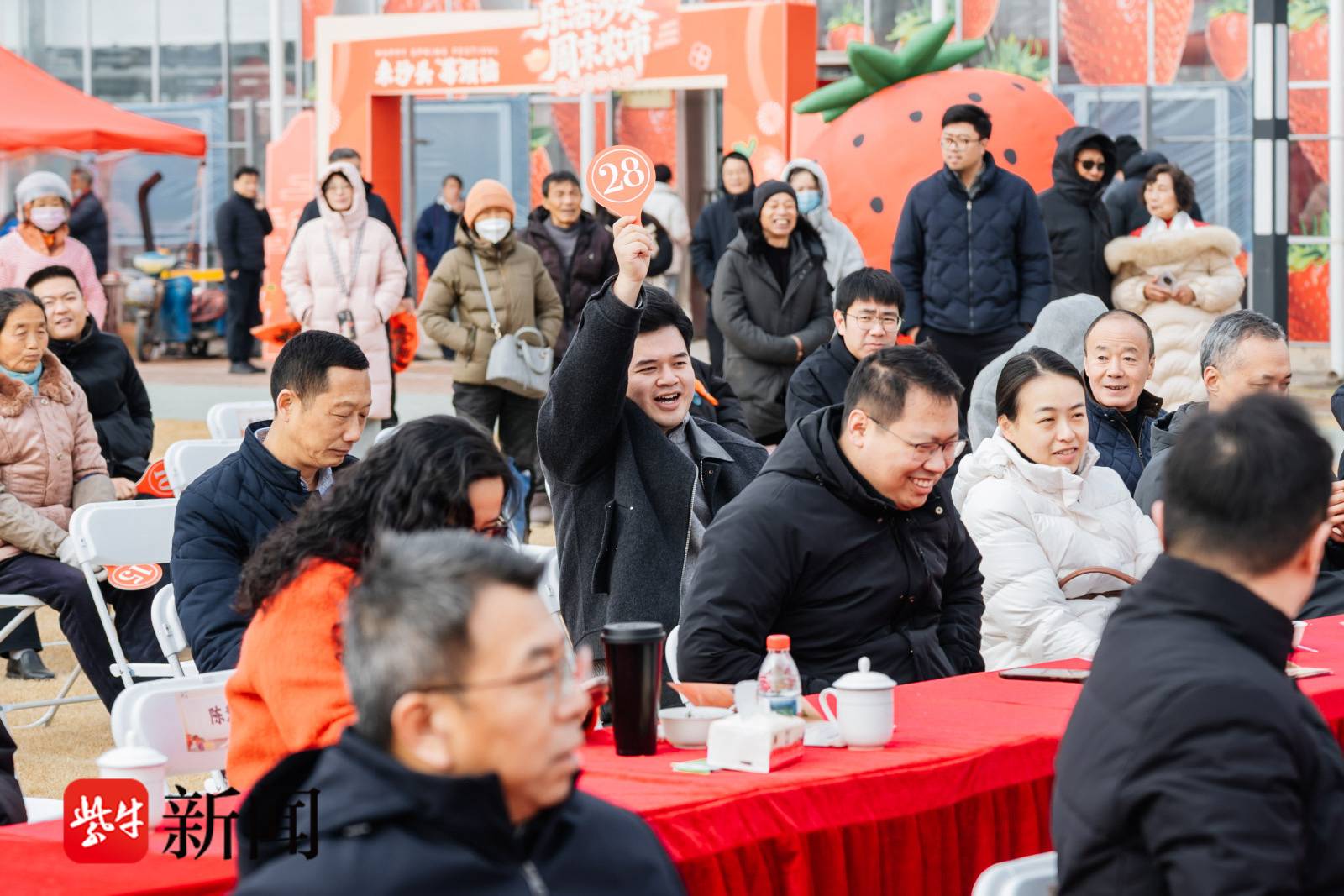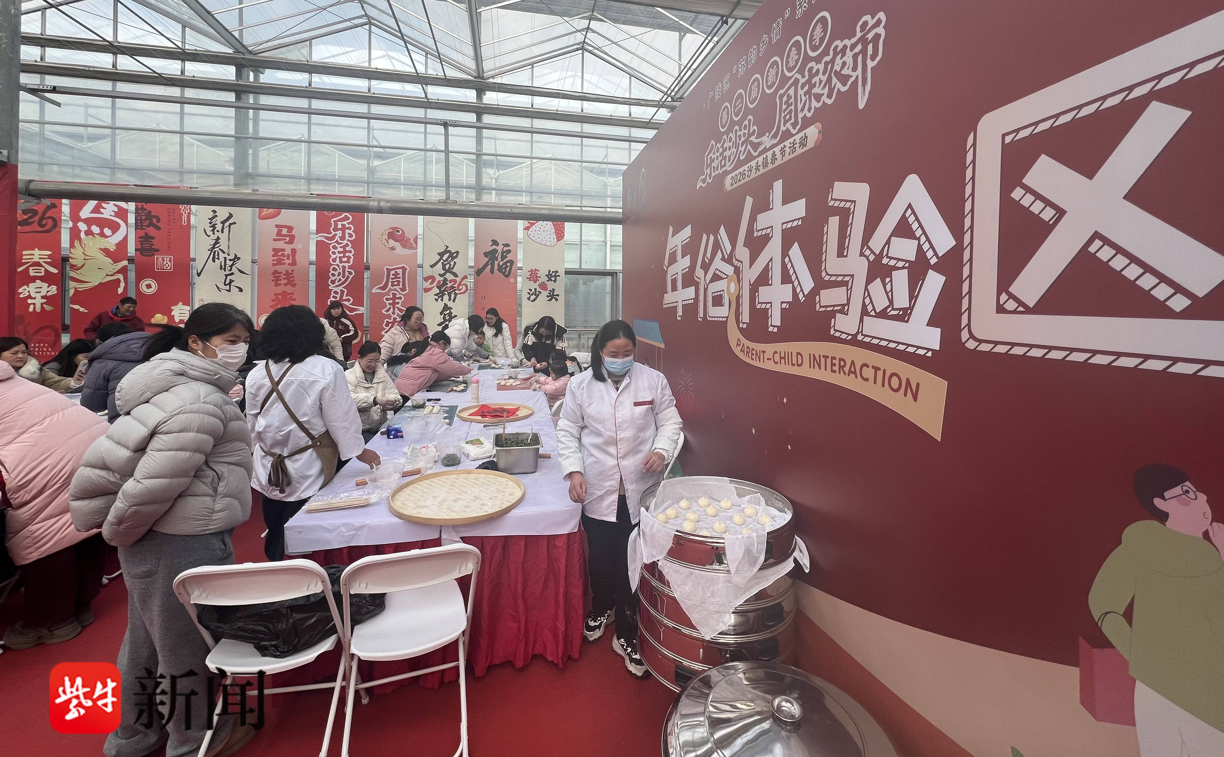 记者“赶集”看到,活动现场六大核心体验区各展特色、各有韵味,串联成一幅鲜活灵动、年味浓郁的新春画卷。寻福年鱼挑战区,下水探寻隐藏的“金鳞福鱼”“锦绣鲤鱼”,趣味比拼、角逐“捞鱼大王”称号;整点拍卖区氛围火热,草莓、黄金甲鱼、“虫草”绿壳蛋等特色农产品零元起拍,现场角逐“竞拍王”;趣味采摘区以立体架式种植为亮点,“不脏鞋、不弯腰”就能畅享采摘乐趣;民俗体验区融合财神巡游、舞龙贺岁、年蒸手作、写福字春联等传统活动,营造浓郁地道的沉浸式年味;年货展销区设26个特色摊位,涵盖新春礼包、春联年画、生鲜果蔬、传统美食、年宵花卉等,一站式满足市民新春采购需求;文娱互动区打造祈福打卡、亲子手工DIY、休闲露营等多元场景,覆盖全年龄段游玩需求。