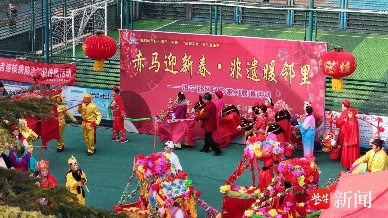 骏马踏春至,非遗润人心。近日,连云港市海州区新南街道海宁社区体育公园内锣鼓喧天、欢声笑语,一场别开生面的“赤马迎新春·非遗暖邻里”民俗系列展演活动在此隆重举行。