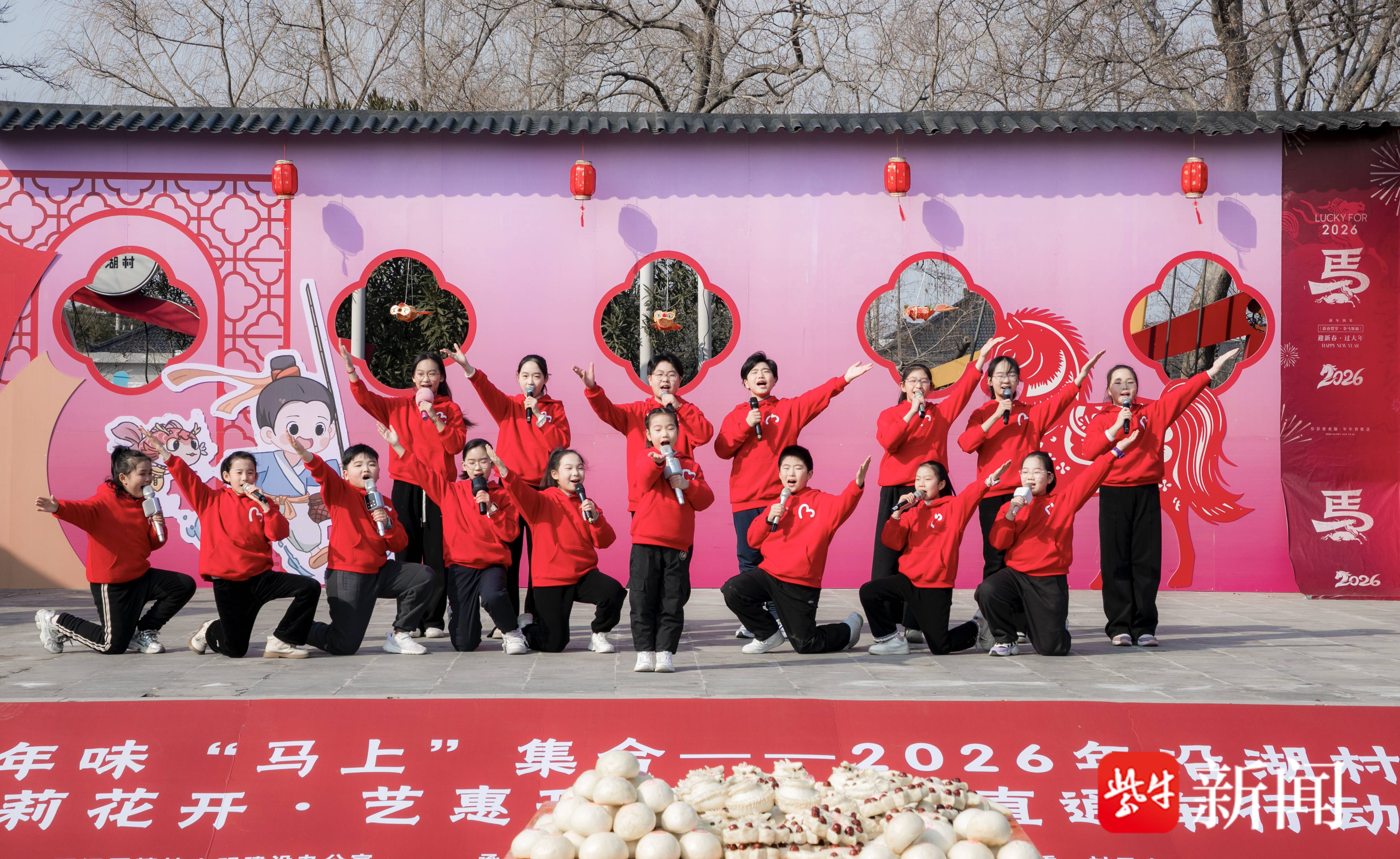 舞台之上,平日里摇橹撒网的渔家妇女,将湖上生活点滴融入村歌《最美沿湖村》,悠扬歌声饱含对家乡的眷恋;传统渔家劳动号子经重新编排,化作铿锵有力的腰鼓表演,敲出昂扬精气神;黄珏社区近50名居民自发组成的板凳龙队踏歌而来,长龙翻腾,引得现场掌声不断。该村主干道上,踩街队伍一路欢歌行进,游客纷纷跟拍;年货市集旁的书法互动区墨香四溢,“写手”们挥毫写春联、送福字;本土“小网红”穿梭人群,通过直播镜头向网友推介沿湖美景,一句“这就是咱们的‘赛里木湖扬州分湖’”,让渔村风光火遍线上。