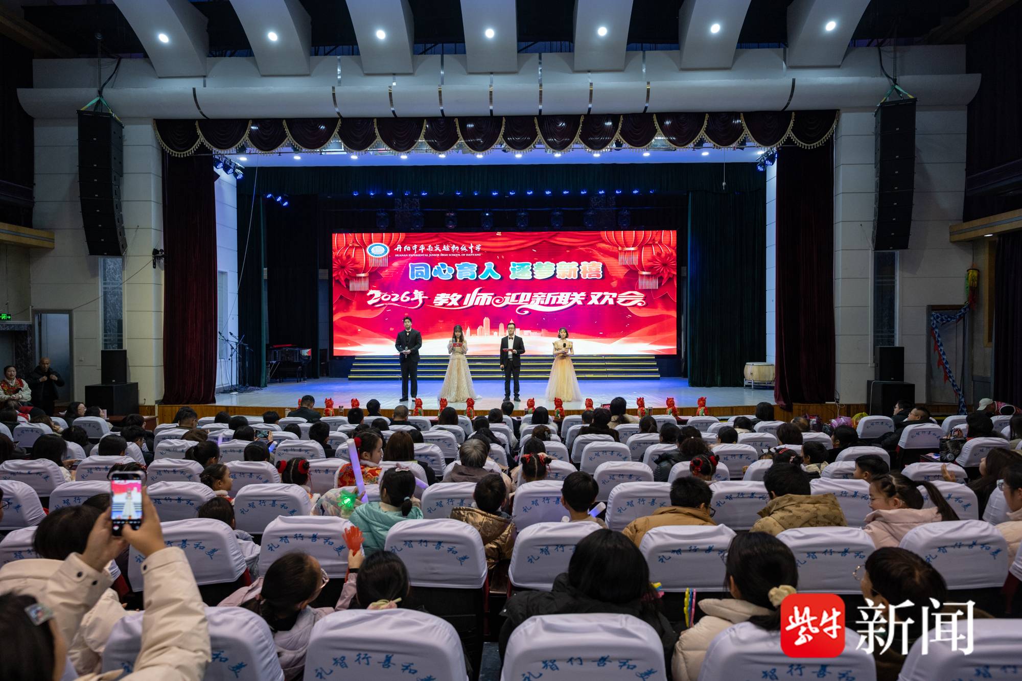 扬子晚报网2月8日讯(通讯员 景虹霞 郭蕾 记者 万凌云 姜天圣)2 月 6 日下午,丹阳市华南实验初级中学(又称丹阳华校)大礼堂内暖意融融、欢声阵阵,学校 “同心育人 逐梦新禧” 教师迎新联欢会隆重举行。全校教职工与家长、家属代表欢聚一堂,以精彩纷呈的文艺表演、温情满满的互动环节,共迎马年新春,凝聚起家校同心、共育桃李的奋进力量。