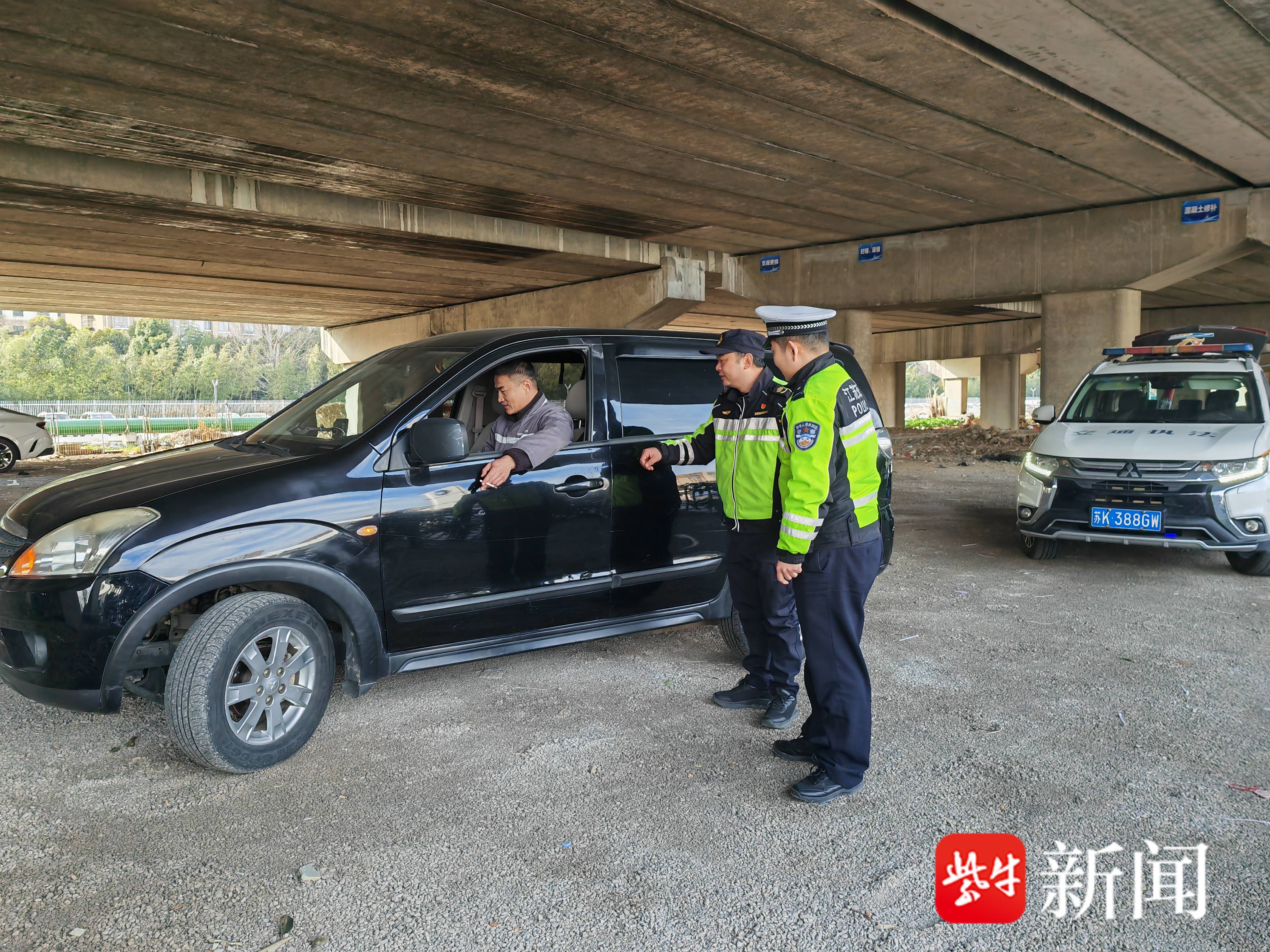 检查过程中,在G40开发区高架桥下,检查组发现隔离护网被打开,有社会车辆将桥下空间当作“停车场”,存在安全隐患。宁通支队第一大队执法人员立即迅速启动联动处置预案,首先对现场情况进行拍照取证,确认护网破损情况和车辆信息,随后执法人员依据《公路安全保护条例》等相关规定,现场对所有车辆逐一开具并张贴《告知书》。与此同时,高速一大队民警迅速通过警务系统查询车主信息,并电话联系当事人,责令其立即驶离。