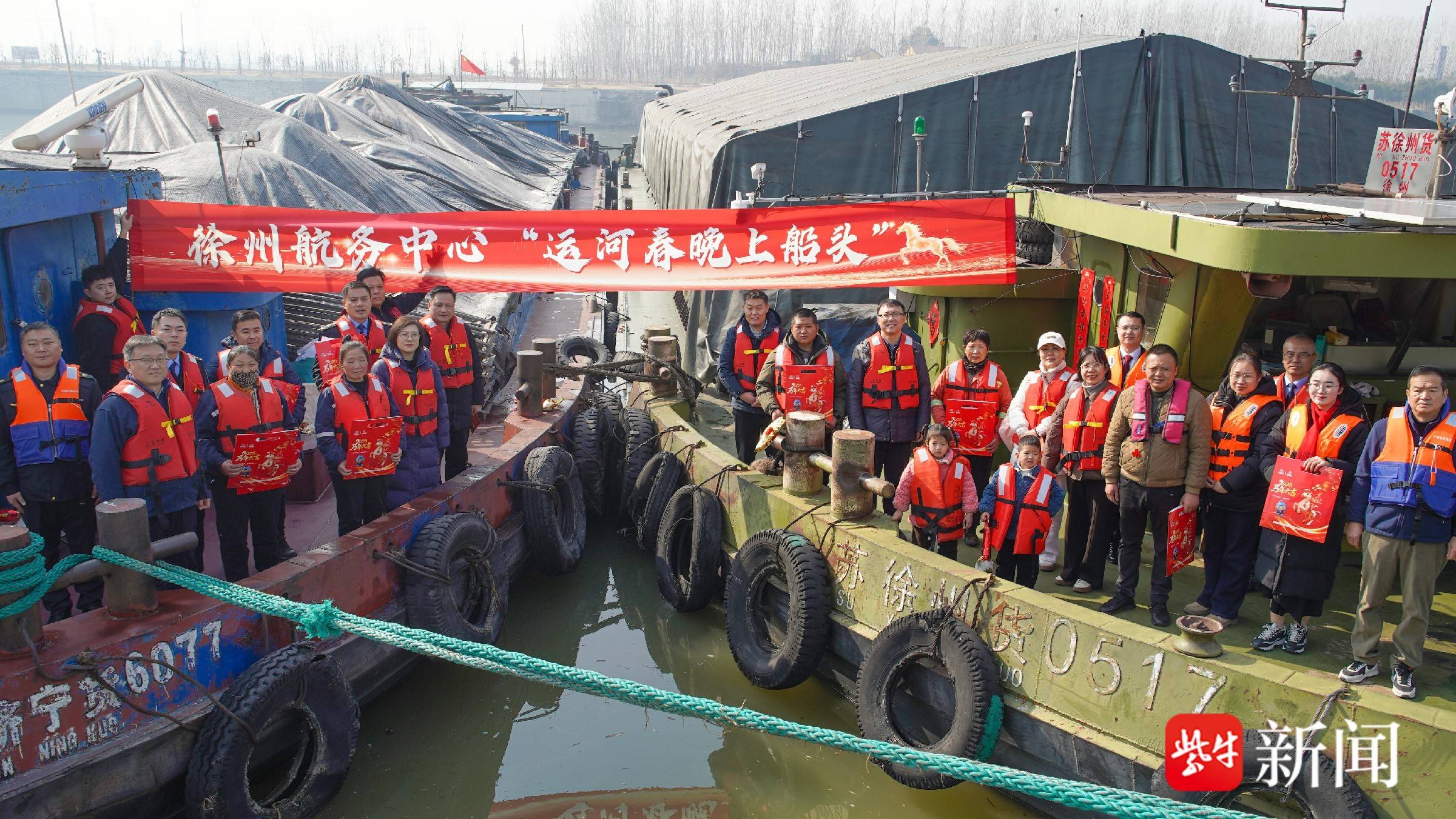 当春运的人潮涌向车站机场,千里运河上的船员们却以船为家、以水为路。2月11日,苏北运河徐州段的两个码头边,一场专门为他们准备的“春晚”在船头温暖开场——这已是徐州航务中心连续第五年,把舞台搭到船员身边。