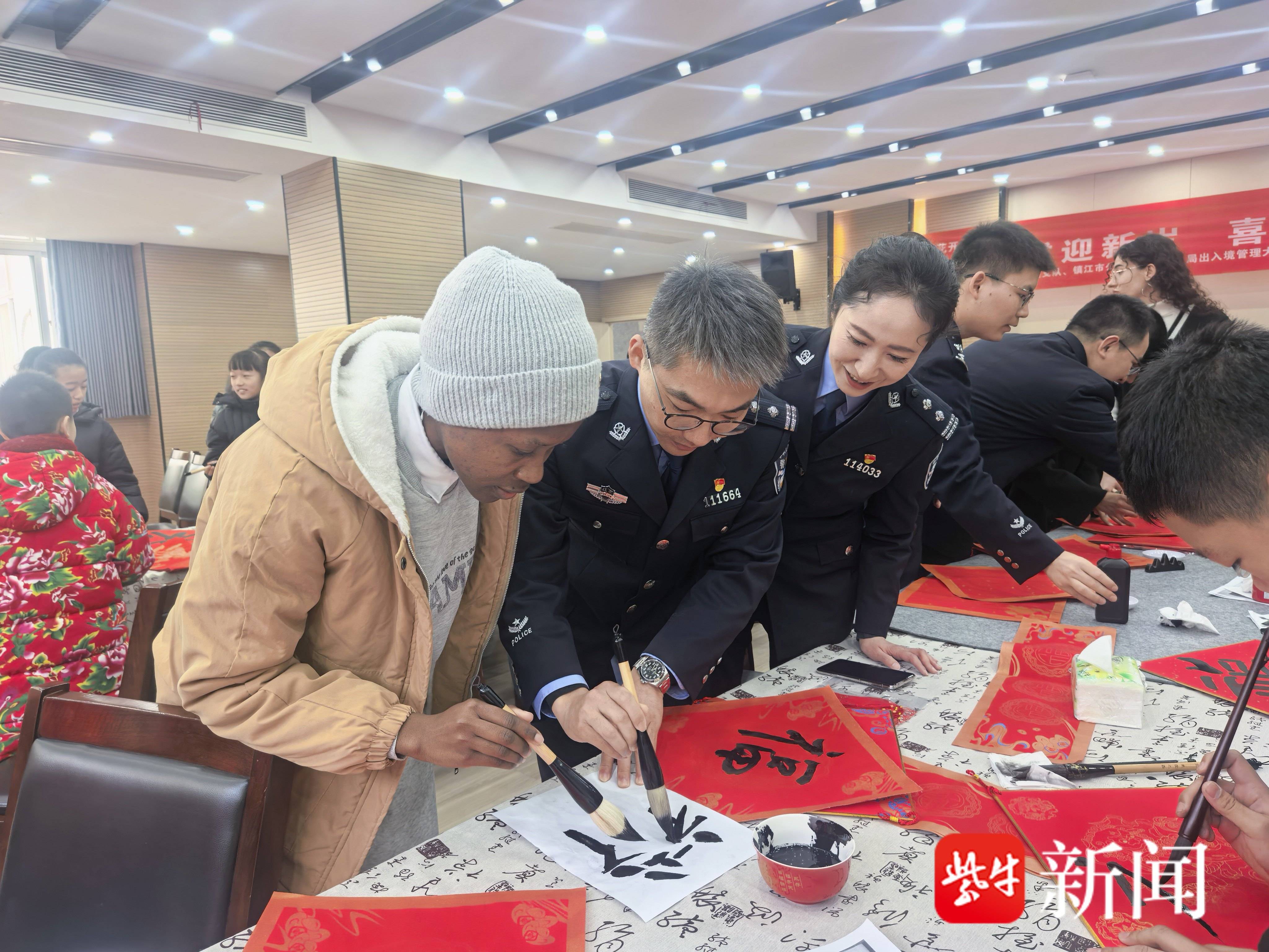 扬子晚报网2月12日讯(通讯员 毛润民 记者 姜天圣)为喜迎丙午马年新春,传承中华优秀传统文化,搭建中外文化交流桥梁,2月10日上午,镇江市局出入境管理支队、经开区出入境管理大队联合丁卯派出所、丁卯街道文化站、武将社区及江苏大学海外学院,共同举办“马到功成迎新年 喜气‘洋’洋过大年”主题迎新活动。外籍留学生、社区小朋友、社区工作人员与民警代表欢聚一堂,在笔墨书香与巧手编织中感受中国年味、共迎新春佳节。