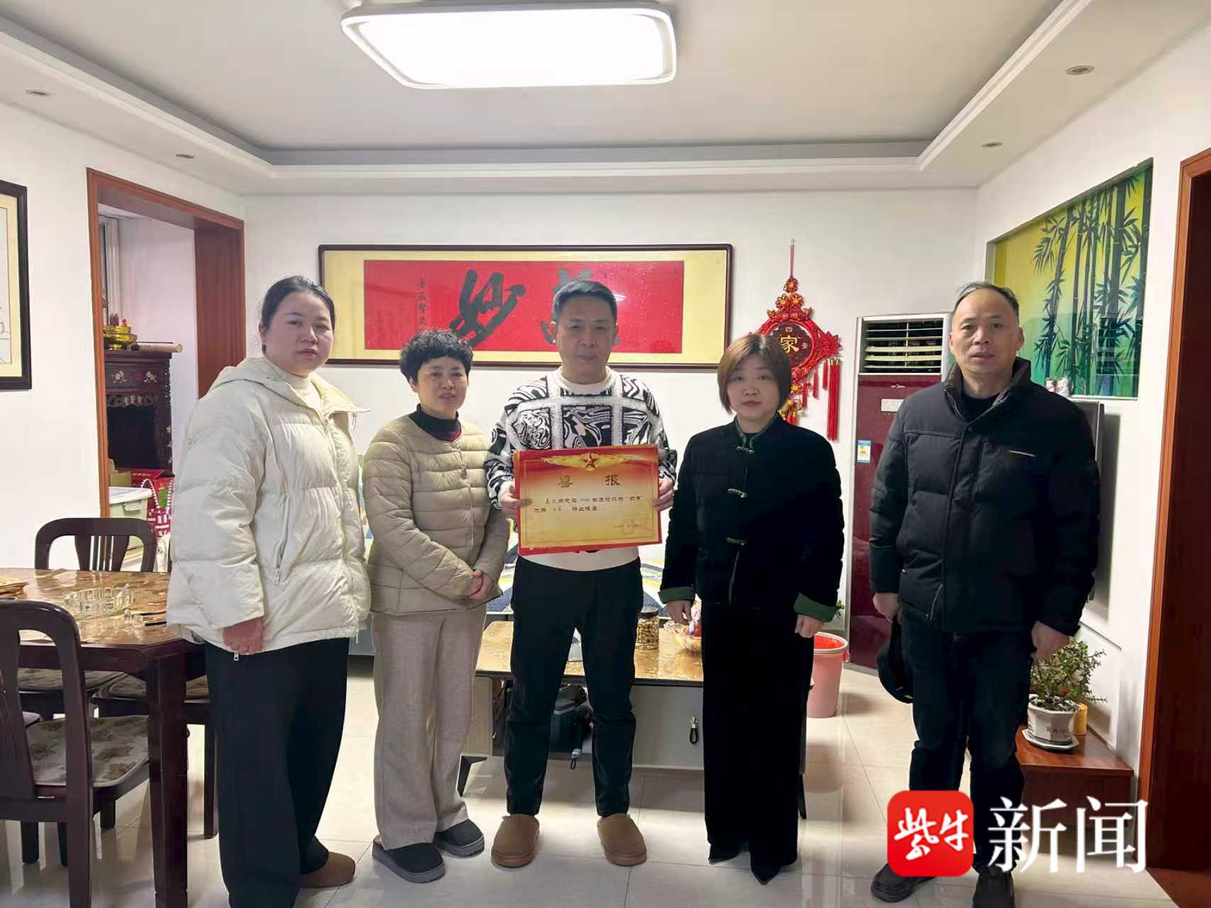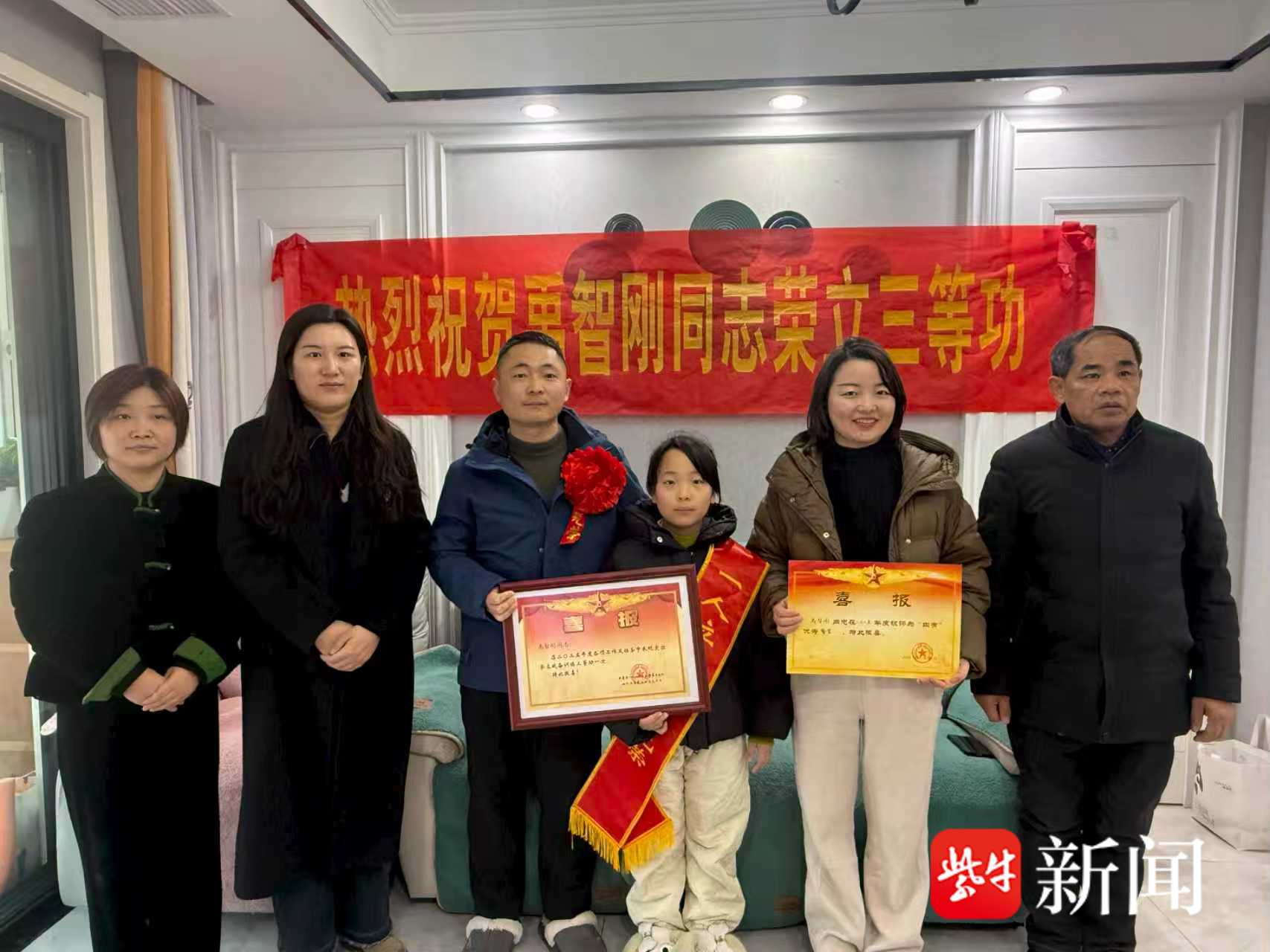 2月11日,盐城市亭湖区新洋街道新丰社区同步为荣立三等功的现役军人禹智刚同志、荣获“四有”优秀士兵的袁杰同志送上立功喜报与慰问,让军人家庭共享荣光,让尊崇之情温暖人心,切实把党和政府对军人及家属的关爱落到实处。