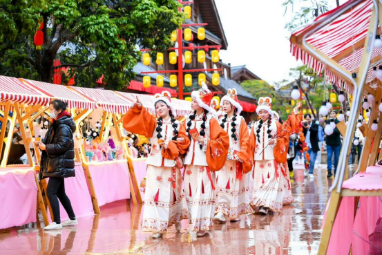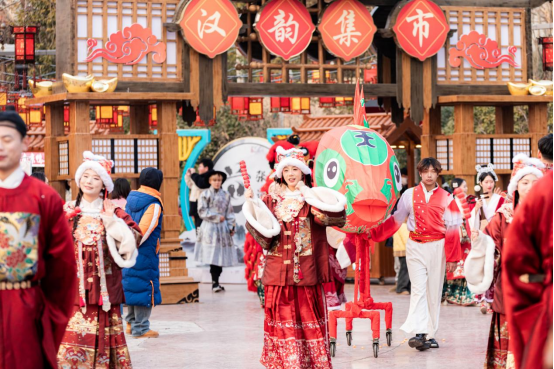 今年春节,徐州方特全新打造烟花小镇、大风歌汉韵集市、雪岭熊风三大主题区域,集传统韵味、沉浸互动与合家欢于一体。“烟花小镇”以开局一枚钱的趣味设定开启新春好运,游客获赠“五铢钱”后可通过参与NPC互动任务赚取更多钱币,兑换刮刮卡或年货零食,身着汉服游园奖励更可翻倍;更有“万福长廊”“扛汉旗”等新春互动,让游客在趣味中沉浸式感受传统文化魅力。