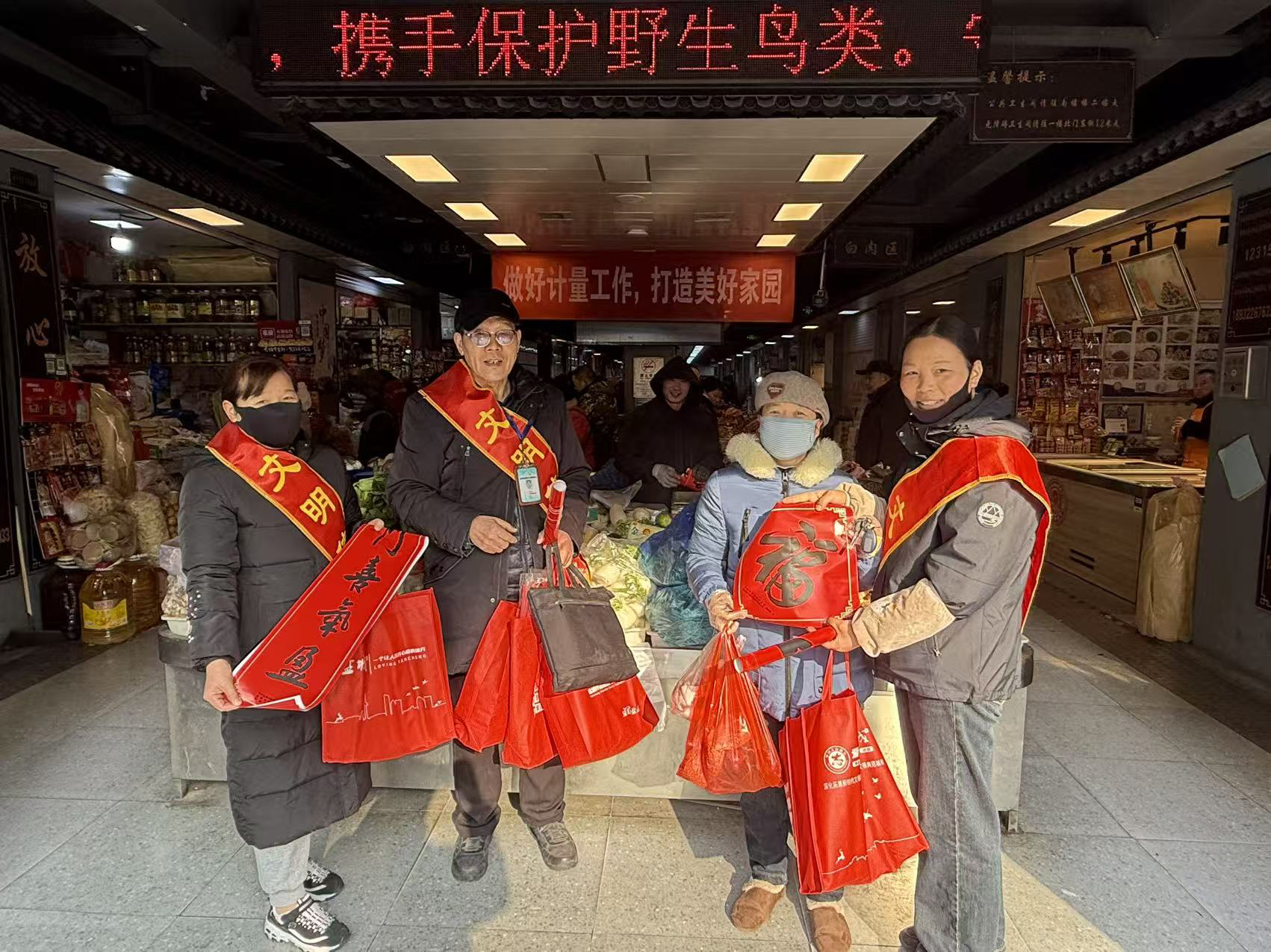 新春将至,年味渐浓。2月11日至12日,盐城市文明创建巡访团、盐城市新时代劳模志愿服务团、盐城市新时代文明实践老党员工作室所组成的“文明使者”队伍,分赴盐城大街小巷、菜场超市与养老特殊群体中,开展“文明使者送福进万家,惠民政策宣传暖民心”社会实践活动。以榜样力量引领文明风尚,以志愿行动传递新春温暖,把党的关怀、惠民政策与新春祝福送到基层一线、送到群众心坎上。