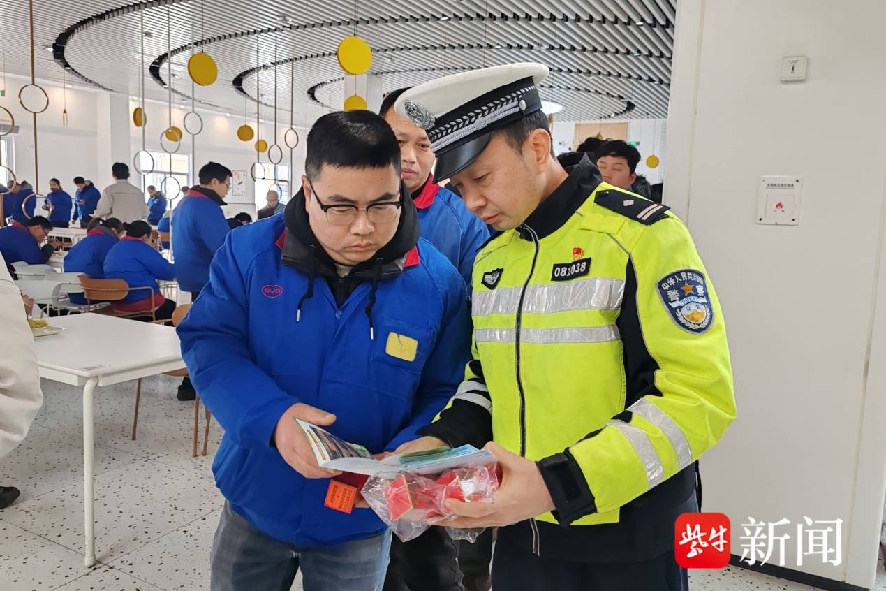 扬子晚报网2月13日讯(通讯员 翟顶峰 记者 朱鼎兆)2月11日,正值2026年春运第十天,返乡返程、企业复工出行车流交织,交通安全风险叠加。当日,淮安市公安局交警支队五大队民警走进比亚迪乘用车有限公司,开展“春运护航·安全暖企”普法宣传活动,兼顾企业生产与员工休息,民警特意利用职工中午就餐时段,在企业食堂搭建临时宣传点,开展灵活高效的交通安全教育。