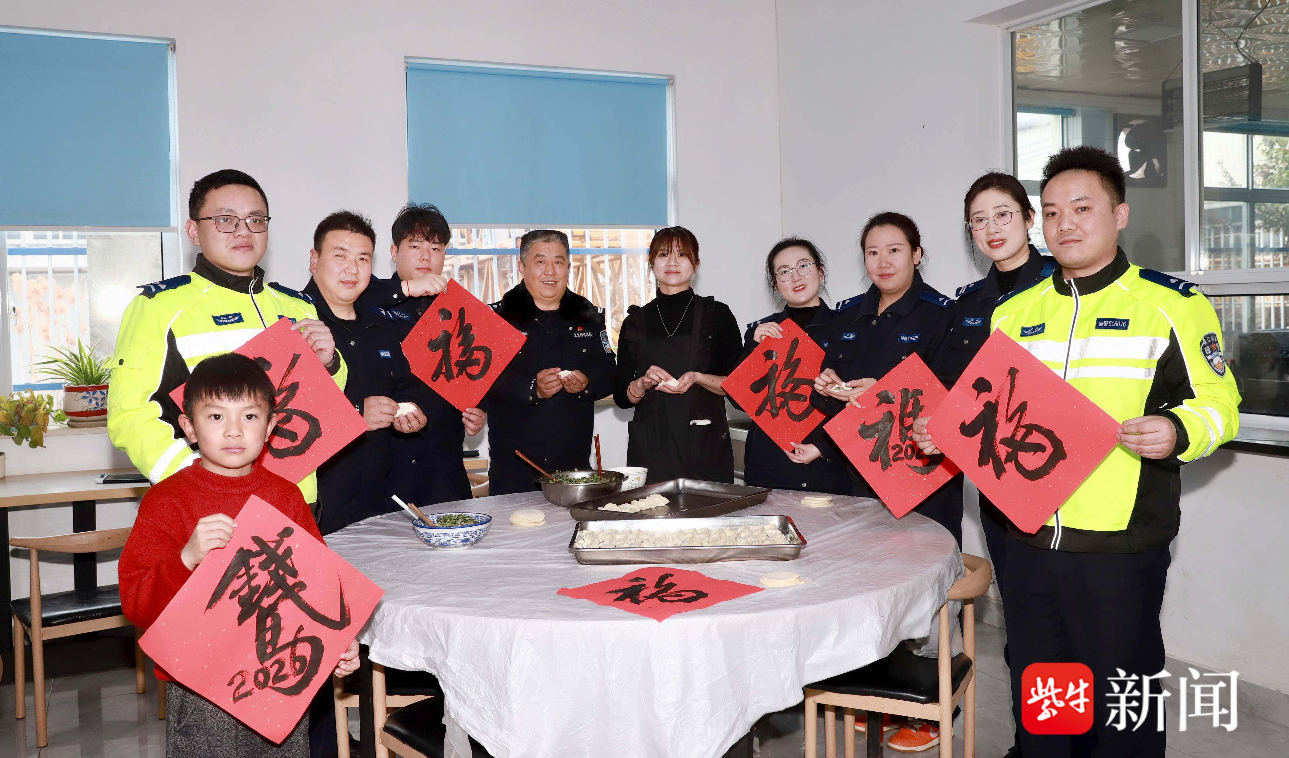 警营花开,福满心间;窗口微笑,服务暖心。 包饺子,唠家常,警营也是家;路口指挥,手势铿锵,守护城市脉搏。铁骑出征,风驰电掣,护航平安路;福送货车司机,愿您一路顺风。