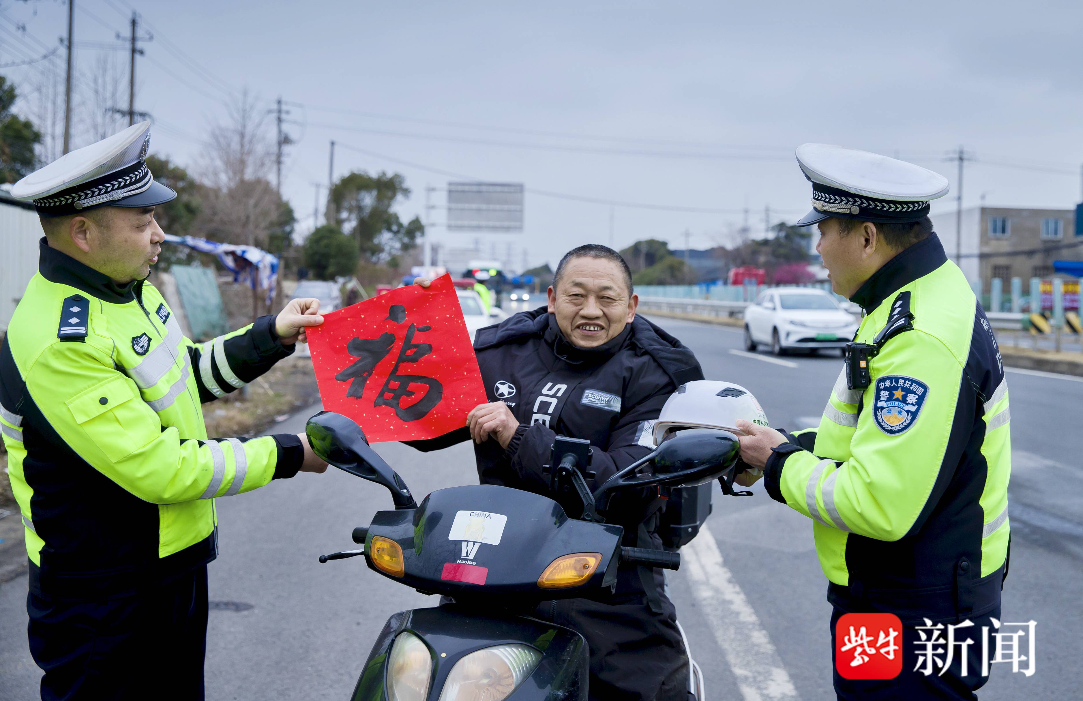 扬子晚报网2月14日讯(通讯员 张进 於荣荣 记者 万凌云 姜天圣) 有一种颜色,叫“交警蓝”,那是守护的颜色;有一种温暖,叫“中国红”,那是团圆的颜色。