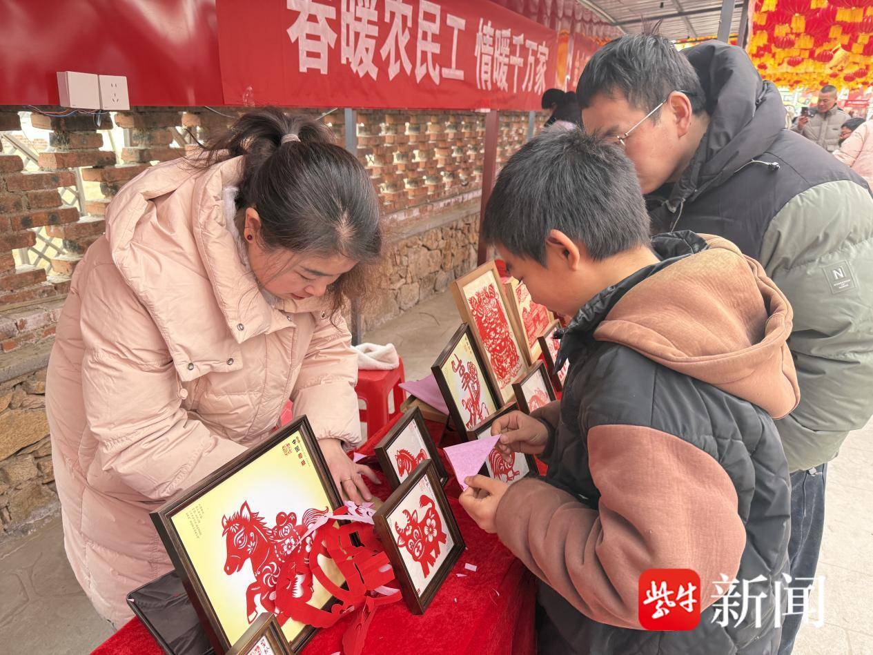 非遗剪纸体验区更是成为现场的“打卡热点”,非遗传承人现场授课,手把手教村民剪纸技巧。村民们热情高涨,认真学习、精心创作,一张张精巧的窗花、一个个灵动的马年生肖剪纸在指尖诞生,孩子们拿着自己的作品欢呼雀跃,老人们则在剪纸过程中重温童年记忆,传统非遗技艺在欢声笑语中得以传承,也让年味多了一份文化厚重感。
