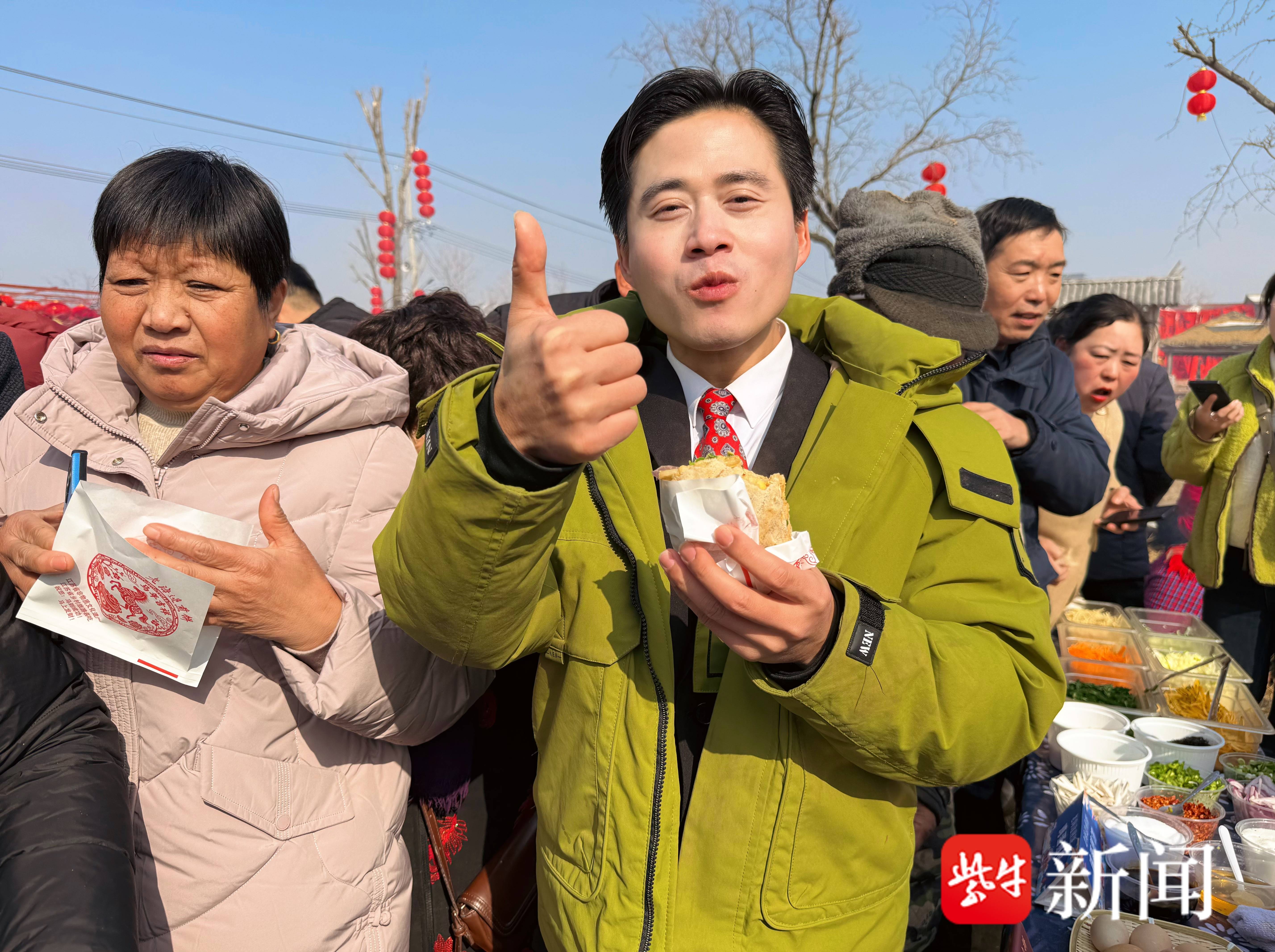 “今天太热闹了,看了直播,特意带着孩子来的。平时都是买现成的,今天亲眼看着师傅们烙煎饼,孩子都看入迷了。刚尝了一口,又香又脆,比超市买的有灵魂多了,这才是过年该有的味道!”青口镇的刘女士还特意让孩子上手体验了一把摊煎饼。从本地村民到外地游客,从非遗传承人到网红达人,每个人的脸上都洋溢着笑容,香气、笑声、喝彩声交织在一起,汇成最动人的新春序曲。