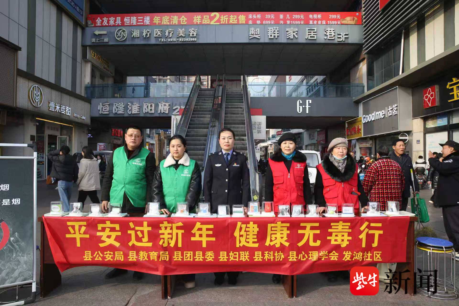 年味渐浓,平安护航。2月9日至14日,盐城市射阳县公安局禁毒部门联合各镇区禁毒办,聚焦人员密集,在恒隆广场、吾悦广场、农村赶集点、城乡贸易市场等地,持续开展“平安过新年 健康无毒行”主题禁毒宣传活动,把防毒知识送到群众身边,把平安祝福带进千家万户。