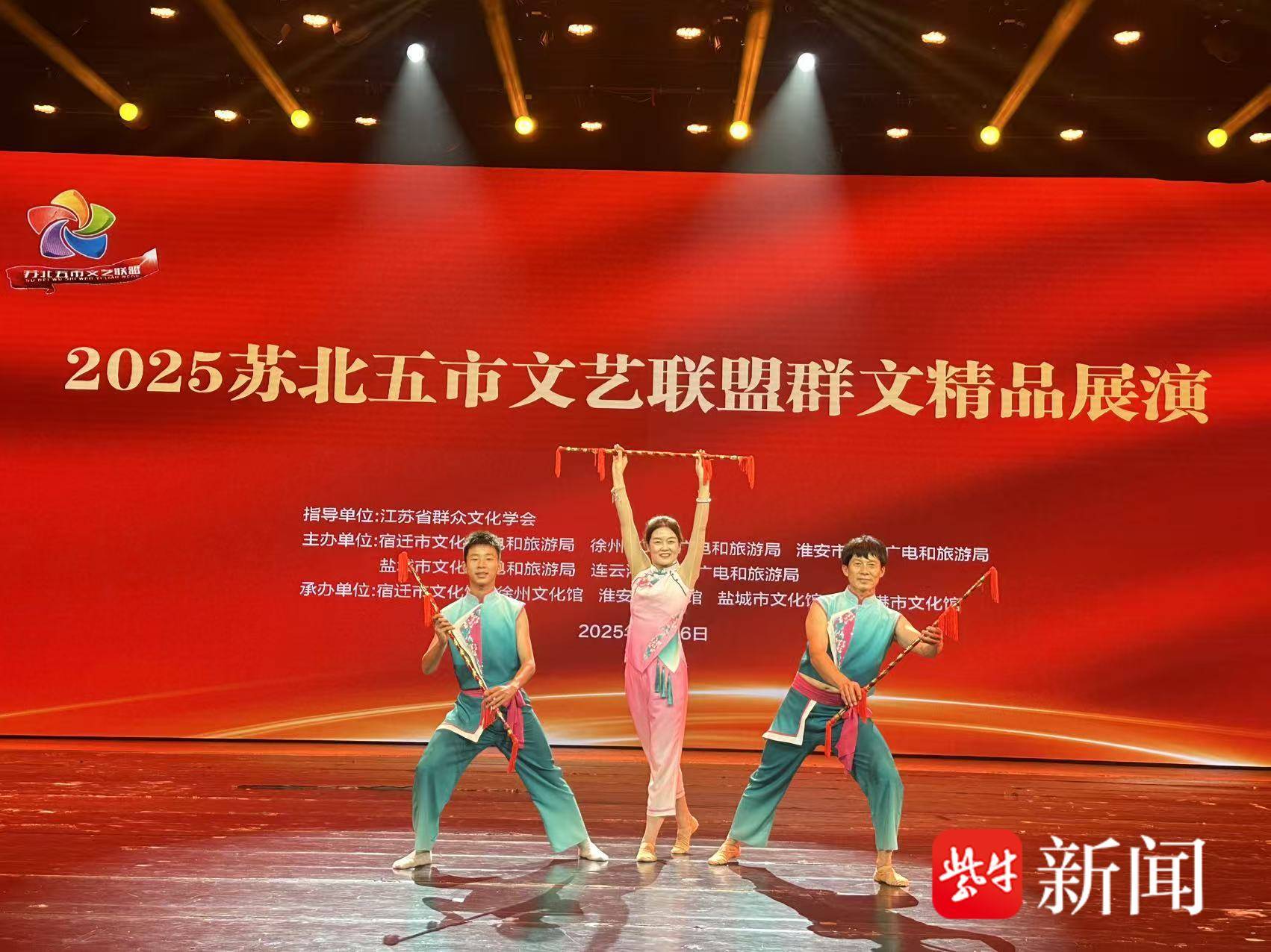 舞台不止在乡下。“苏超”“宿超”赛事现场插进非遗展演,街头“喊宿迁”微文艺展演天天有,长三角连厢邀请赛、全省广场舞大赛、五星工程奖……都能看见宿迁群众社团的身影。在2025年,宿迁11支团队入选省“优秀群众文化团队”培育对象,五年累计62支。沭阳县夕阳美艺术团自编舞蹈《花乡欢歌》入围省五星工程奖决赛;宿迁市黄梅戏爱好者协会拿下全省戏曲票友荟萃优秀表演奖。