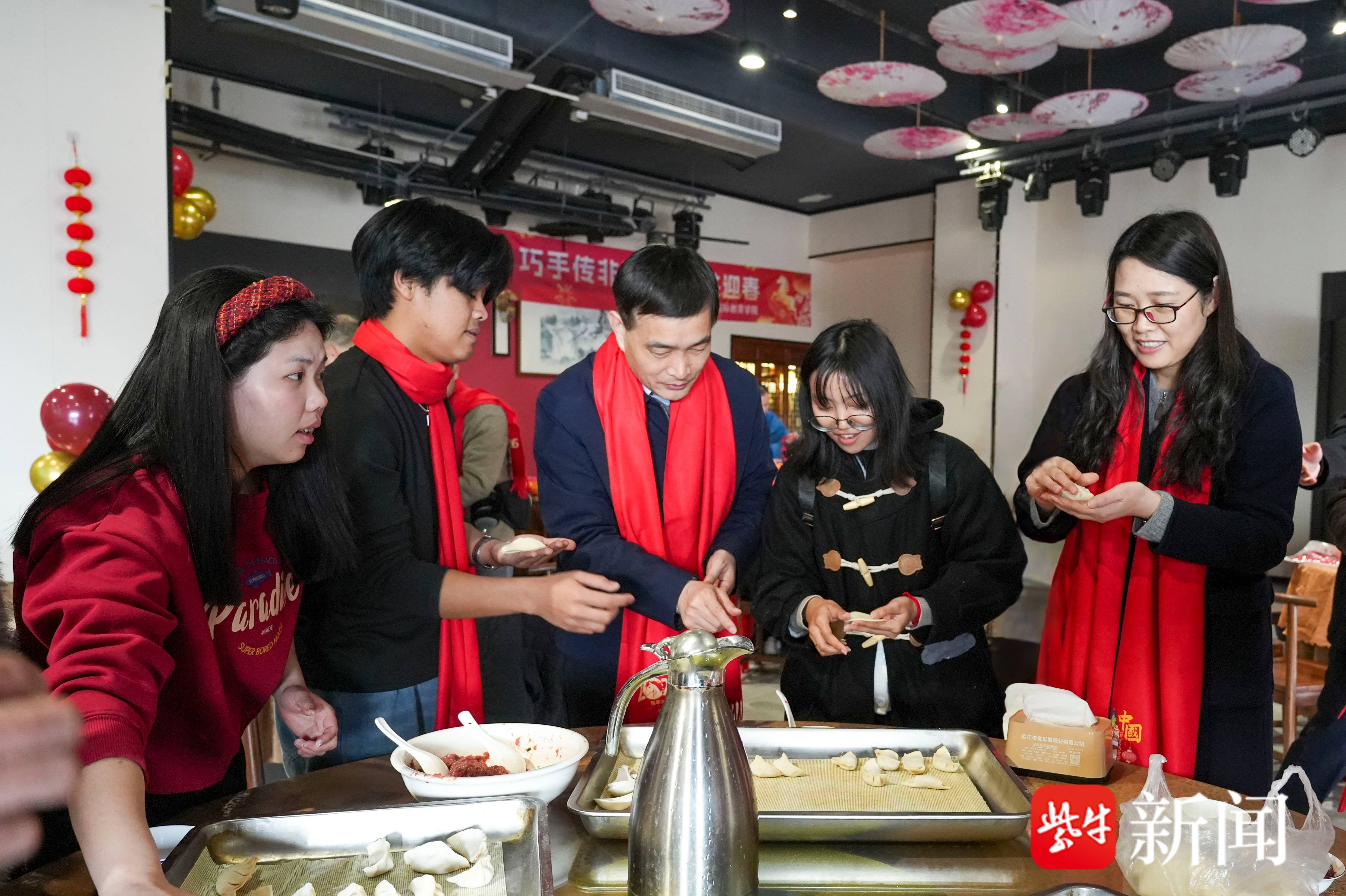 墨香传福、巧手编结、共品年味……活动现场,来自印度尼西亚和老挝的同学带来各具特色的舞蹈表演。在欢声笑语中,大家还一起动手,把新春祝愿和对生活的希望包进小小的饺子里,在享受欢乐时光的同时,丰富多彩的活动让身处异乡的留学生们感受到了浓浓的中国“年味道”,现场一派祥和温馨的景象。
