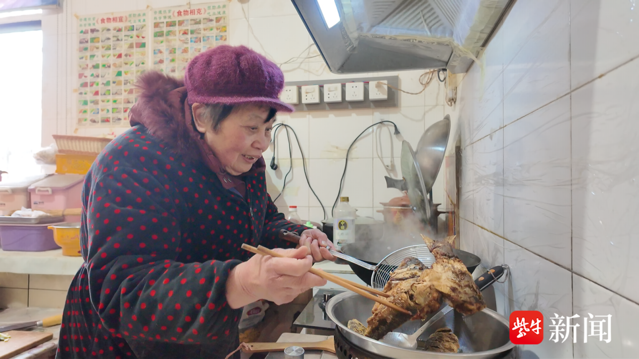 当天上午的城北村,家家户户的灶台都升腾起热气,为了这场团圆宴,村民们早早在家忙活起来。在村民沈兰英的厨房里,她正站在灶台前,用锅铲轻轻推动着锅中的红烧刀鱼,这是她最拿手的菜,也是她准备的新年祝福,“我琢磨来琢磨去,还是做道年年有‘鱼’最实在,”沈兰英笑着说道,“希望乡亲们在2026年,家家户户都能年年有余、岁岁安康,日子过得富足又安稳,万事皆如心意。”另一边,村民闵香的油锅滋滋作响,圆滚滚的肉丸子刚出锅,寓意着“岁岁团圆”。鱼跃龙门,团团圆圆,这是属于城北村最朴实的年味。