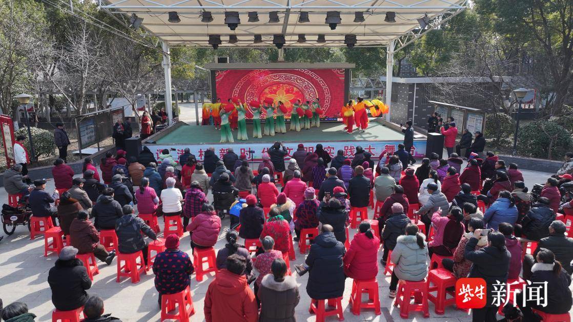 下午两点,胡集街道谭港村文明实践站南北广场锣鼓喧天、歌舞飞扬,百姓大舞台火热上演两场马年“村晚”,文化志愿者自编自导自演歌舞、小品、情景剧等节目,让村民在“家门口”乐享新春“文化大餐”。