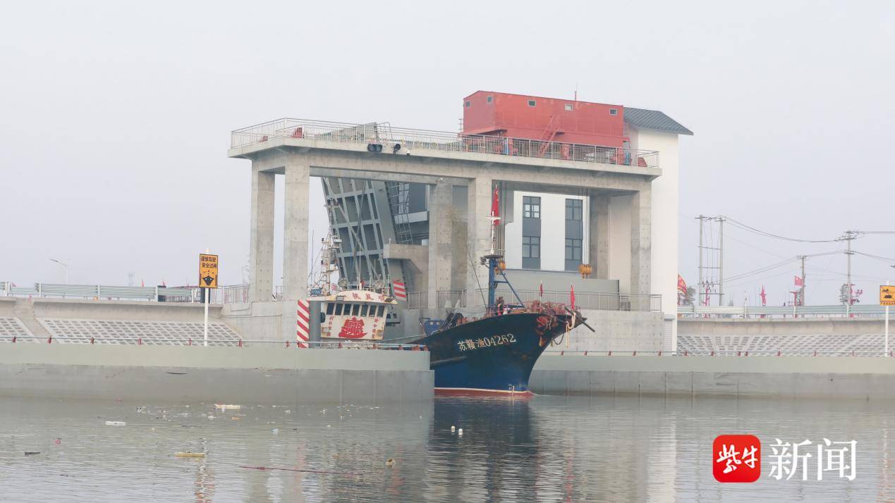 石桥镇韩口港闸口渔船驶向海上