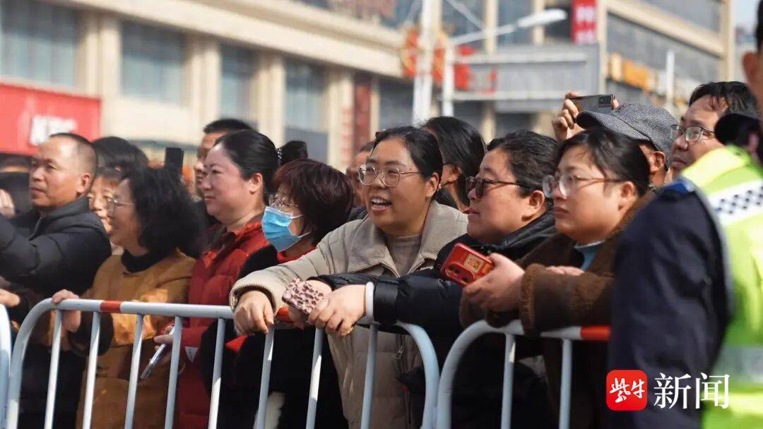 队伍还未行至人民路口,欢腾的气息已先一步抵达。人群从四面八方聚拢而来,里三层外三层,把整条街围成一道流动的年俗长廊。锣鼓敲开了天,欢呼声铺满了地,相机快门声、喝彩声、鼓乐声交织在一起,奏响了这座城最热烈的新春乐章。