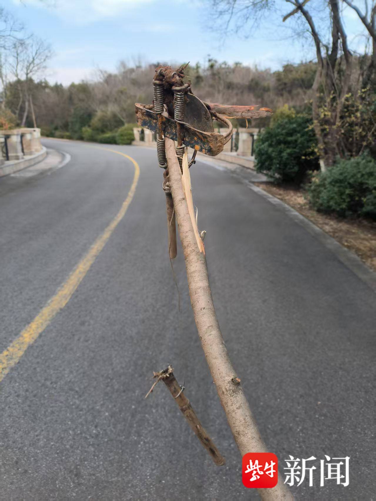 很快,句容市公安局茅山景区派出所民警带着辅警赶至现场。但因为果子狸的激烈抗拒,民辅警同样无法靠近!加上狩猎夹卡得太紧,民辅警同样无措。现场电话连线中,民辅警一时感觉很是为难,记者当即告知:请民警协调林业等专业部门到场,合力营救。