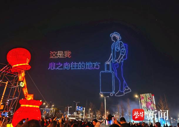 2月21日,扬州生态科技新城双都大厦南广场上空,流光溢彩,人头攒动。夜幕降临,1000架无人机腾空而起,以夜空为画布,以灯光为笔墨,为市民游客进行精彩献演,现场尽显烟火气和年味,也展示城市的热情与魅力。扬子晚报/紫牛新闻记者置身其中,感受这场光影盛会。