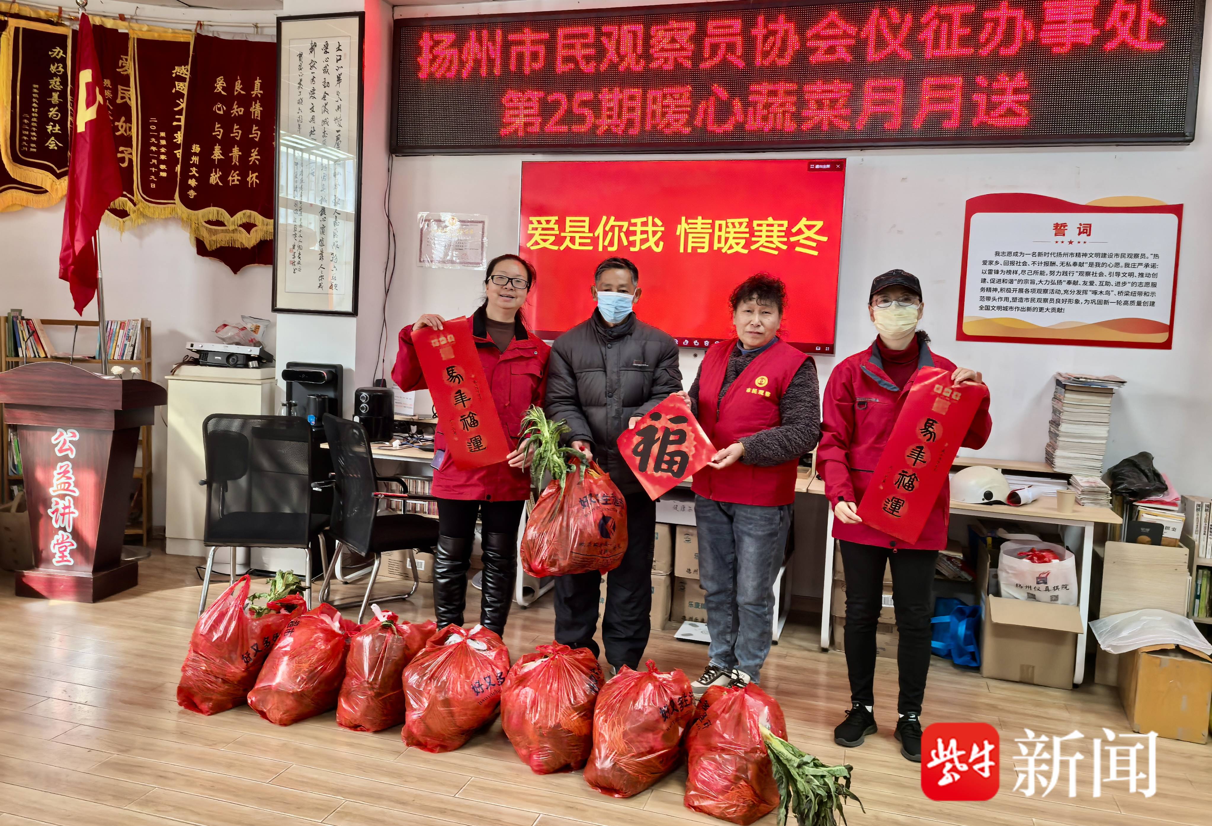 “多亏了志愿者每周送蔬菜,我们老两口过节不愁买菜了。”2月21日,家住仪征市真州镇的困难居民王大爷言语间满是感激。春节期间,扬州市民观察志愿者协会仪征办事处持续推进“暖新行动”活动。一年365天,每周六上午,志愿者们都会准时将新鲜蔬菜送到仪征城区16户困难家庭家中。