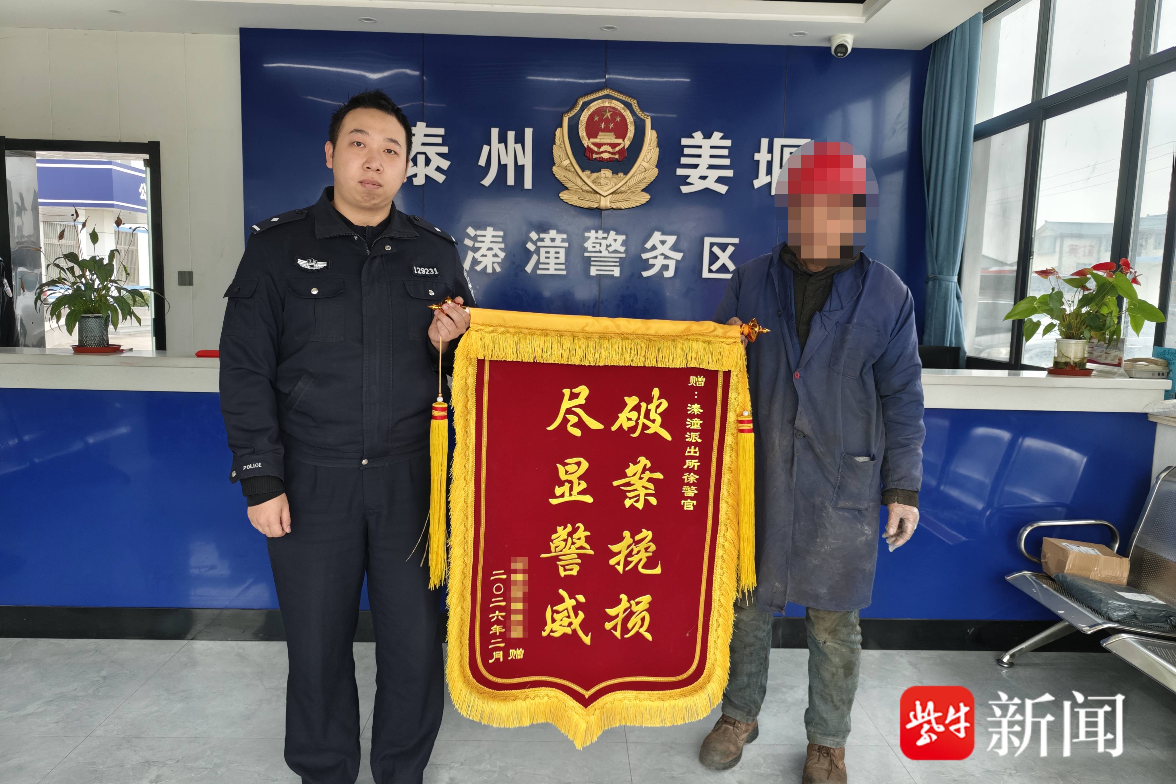 扬子晚报网2月26日讯(通讯员 李誉 孙寒琦 记者 王国柱)“本来我不打算报警,觉得不一定能找到对方,没想到真的帮我把钱追回来了!”2月24日,新春开工第一天,陈先生将一面印有“破案挽损 尽显警威”的锦旗,送至泰州市公安局姜堰分局溱潼派出所,以此表达对民警的深深谢意。