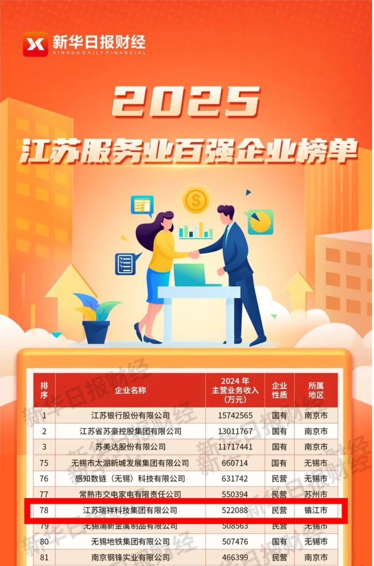 在推动自身发展的同时,瑞祥持续深化产业协同。近年来,集团先后与汇通达、恒顺醋业、雅戈尔等行业领军企业达成战略合作,以数字化能力赋能传统品牌,打造高端商务合作新模式,有力促进产业链上下游的协同发展。回望发展历程,瑞祥的每一步都坚实有力。集团已连续四年入选“中国互联网综合实力前百家企业”,并荣登“中国产业科技百强企业榜”“江苏服务业百强企业”等权威榜单,充分彰显了其在全国范围内的影响力和行业认可度。