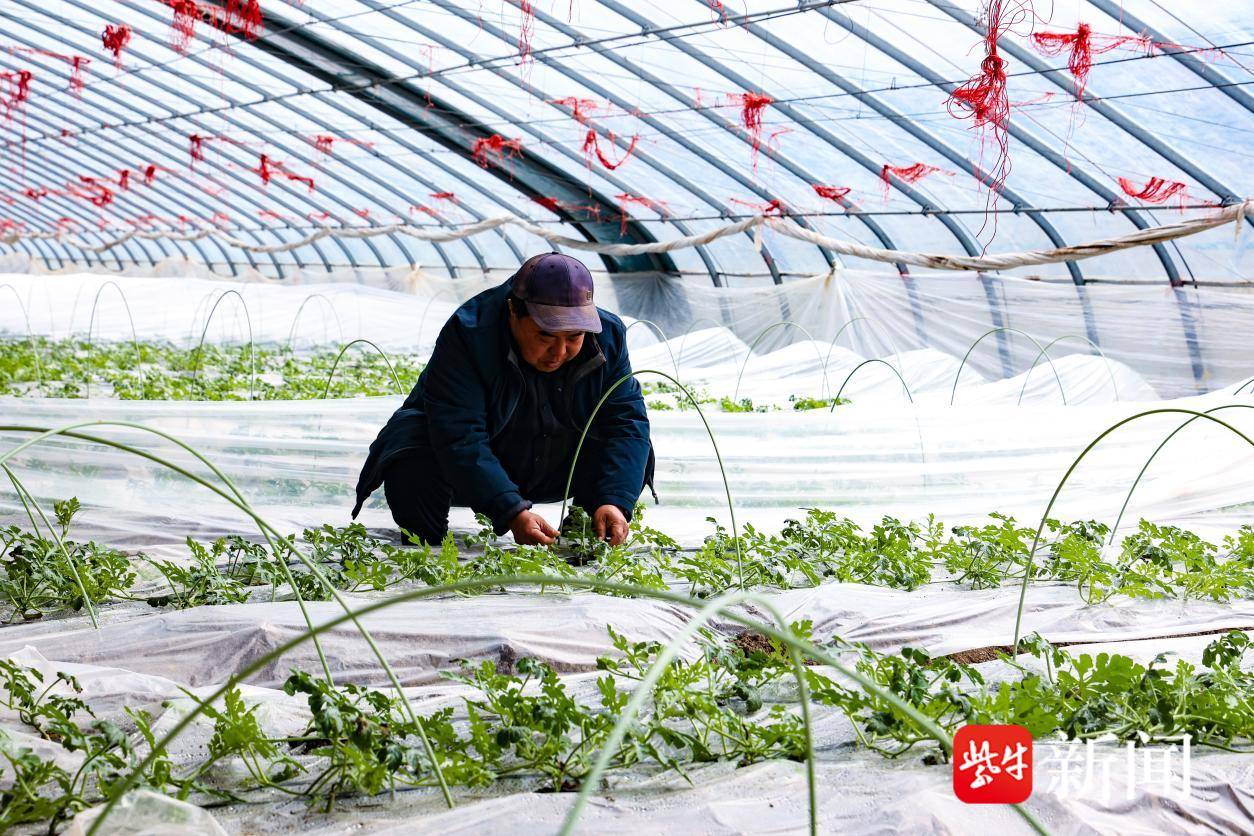云台农场的日光温室内,暖意融融、生机盎然,精品西瓜“小糖丸”的春季管护工作正有序推进,成为特色果蔬春耕生产的生动缩影。一排排刚定植的西瓜苗青翠欲滴、长势均衡,工作人员穿梭其间,细致开展整枝打杈、吊蔓等作业,为瓜苗生长保驾护航。不同于传统地爬种植,这里的“小糖丸”将采用立体吊蔓栽培技术,让瓜蔓向上生长,最大化利用温室空间。为抵御早春气温波动,温室配备“三层膜+一层棉被”四层覆盖保温技术,精准锁住棚内温度,同时工作人员严格把控温湿度、做好水肥调控,全方位为瓜苗营造适宜的生长环境。据瓜棚负责人荣伟介绍,“小糖丸”以个头小巧、皮薄手剥、口感清甜成为市场爆款,从定植到成熟约需两个半月至三个月,按当前长势,这批西瓜预计4月中下旬即可成熟上市,抢占“早春第一瓜”市场先机,小小的瓜苗在春寒中孕育着甜蜜的丰收希望。