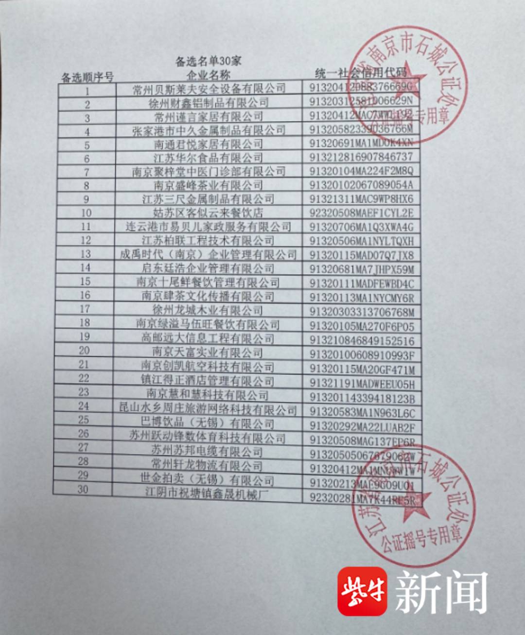 2月27日14时,2026江苏省城市足球联赛(“苏超”)小微企业商务遴选抽签摇号在南京市石城公证处圆满举行。在全程公证监督下,32家拟中选企业、30家备选企业名单现场产生,即日起进入约10天的资格复核与公示环节,最终合作名单将在复核通过后正式公布。