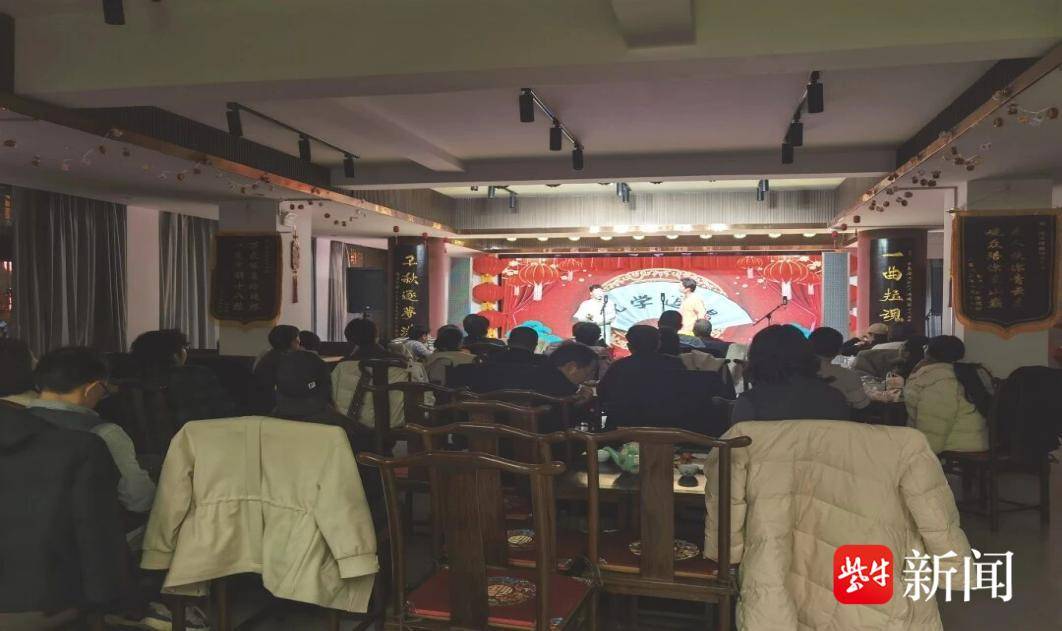 位于盐河巷的“连云港腔调”小剧场,春节期间天天有好戏。2月17日至23日,淮海戏《抬花轿》《皮秀英四告》《王婆骂鸡》、京剧《卖水》、越剧《牡丹亭》等经典剧目轮番上演,国家级非遗海州五大宫调《软平》的婉转唱腔引人入胜,相声《欢声笑语》则为剧场增添了更多节日的轻松氛围。