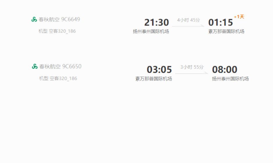 4月11日起直飞!春秋航空开通扬州(泰州)⇋泰国曼谷航线