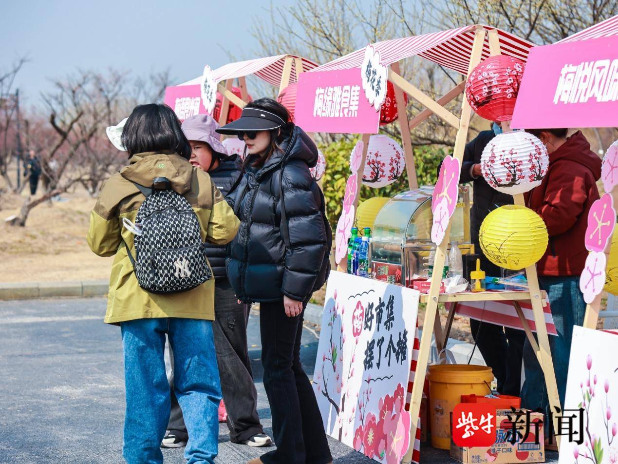 “新春主题市集”引入 35 家商户,划分年味美食区、非遗文创区、游艺互动区三大区域,汇集板浦凉粉、灌云大糕等本土特色小吃,梅花糕、青梅酒等梅主题美食,以及麦秆画、蓝印花布包等非遗手作和梅主题文创、三景区联名文创产品,同时设置套圈、钓金鱼等传统游艺项目,实现 “观赏 + 游玩 + 消费” 的完整闭环。