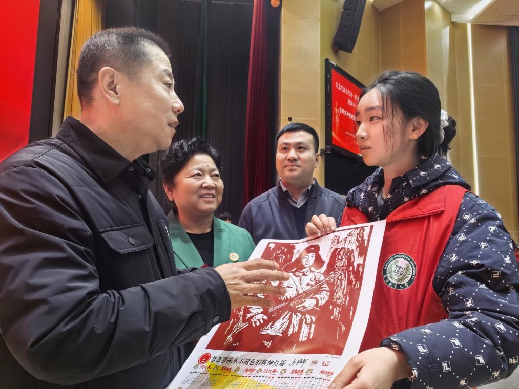 话音落下,掌声次第响起,越发热烈。南京林业大学白马校区党委副书记陈鑫接过话筒,向在场的青年学子们发出深情号召:希望大家在感悟雷锋精神中筑牢信仰之基,做信念如磐的有志青年;在践行雷锋精神中砥砺过硬本领,做担当实干的有为青年;在传承雷锋精神中引领文明风尚,做向善而行的有爱青年。