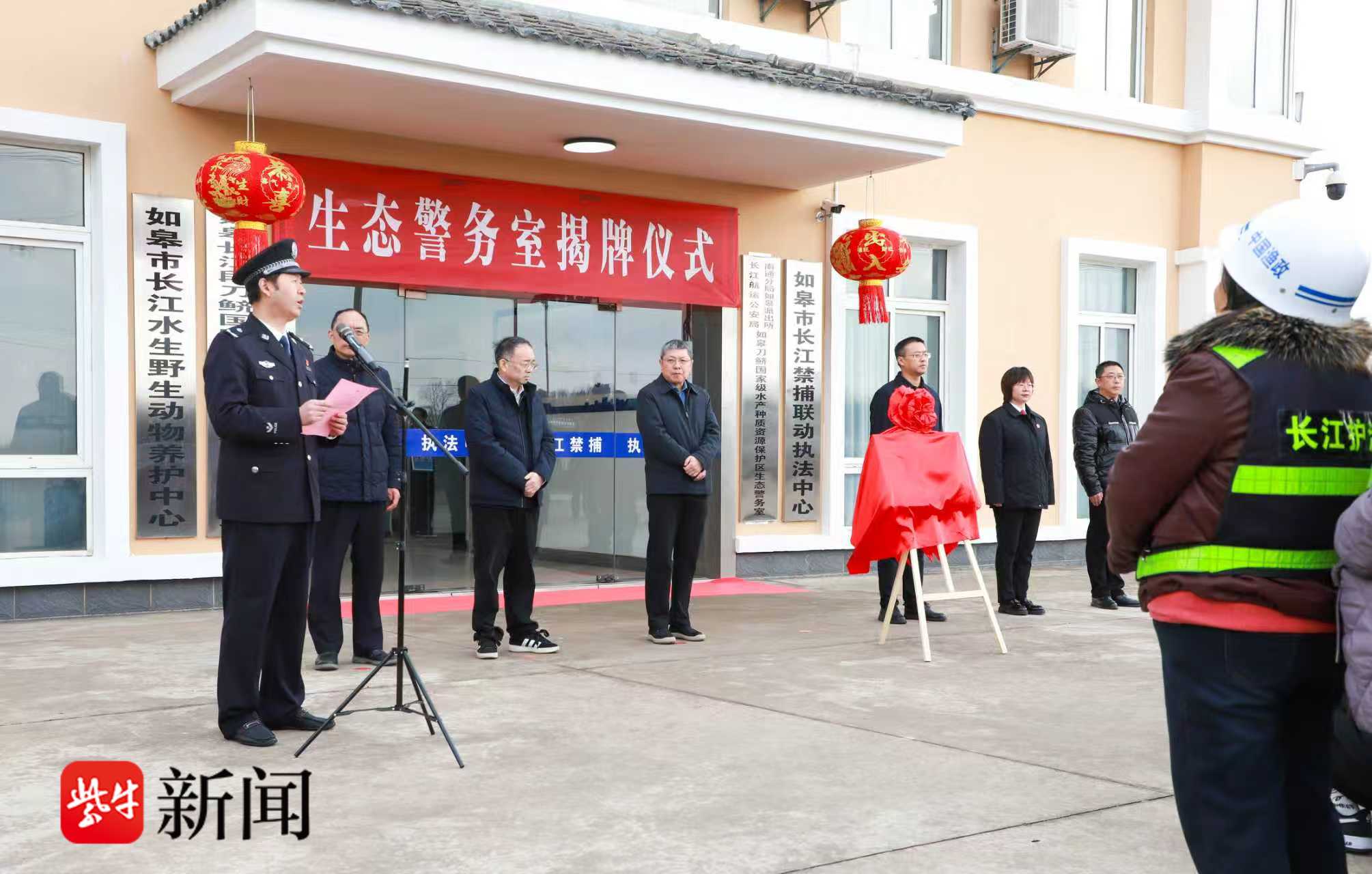 晨光熹微,长江岸线绿意盎然。活动首站,如皋刀鲚国家级水产种质资源保护区生态警务室揭牌仪式在如皋市长江水生野生动物养护中心隆重举行。红绸落定,标志着长江南通段生态保护增添专业警务新阵地。作为长航公安与地方政府部门深化协作的重要成果,生态警务室的设立,将精准聚焦刀鲚国家级水产种质资源保护区的保护需求,织密长江如皋段生态保护“防控网”,推动执法监管与司法保护深度融合,为长江生态联防联控筑起坚实屏障。