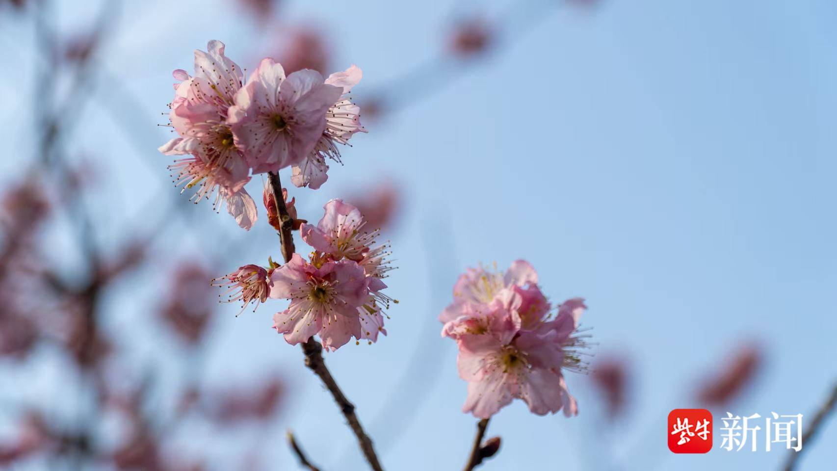 扬子晚报网3月2日讯(通讯员 纪安璐 记者 姜天圣)2月28日,记者走进镇江宝塔山公园,春意已在枝头悄然更替。早春绽放的梅花渐入尾声,而一树树早樱正次第盛开,粉白相间的花海在阳光下铺展开来,远远望去如片片轻盈的粉色云彩,将山坡装点得分外柔美,“梅樱同春”的景致渐入佳境。