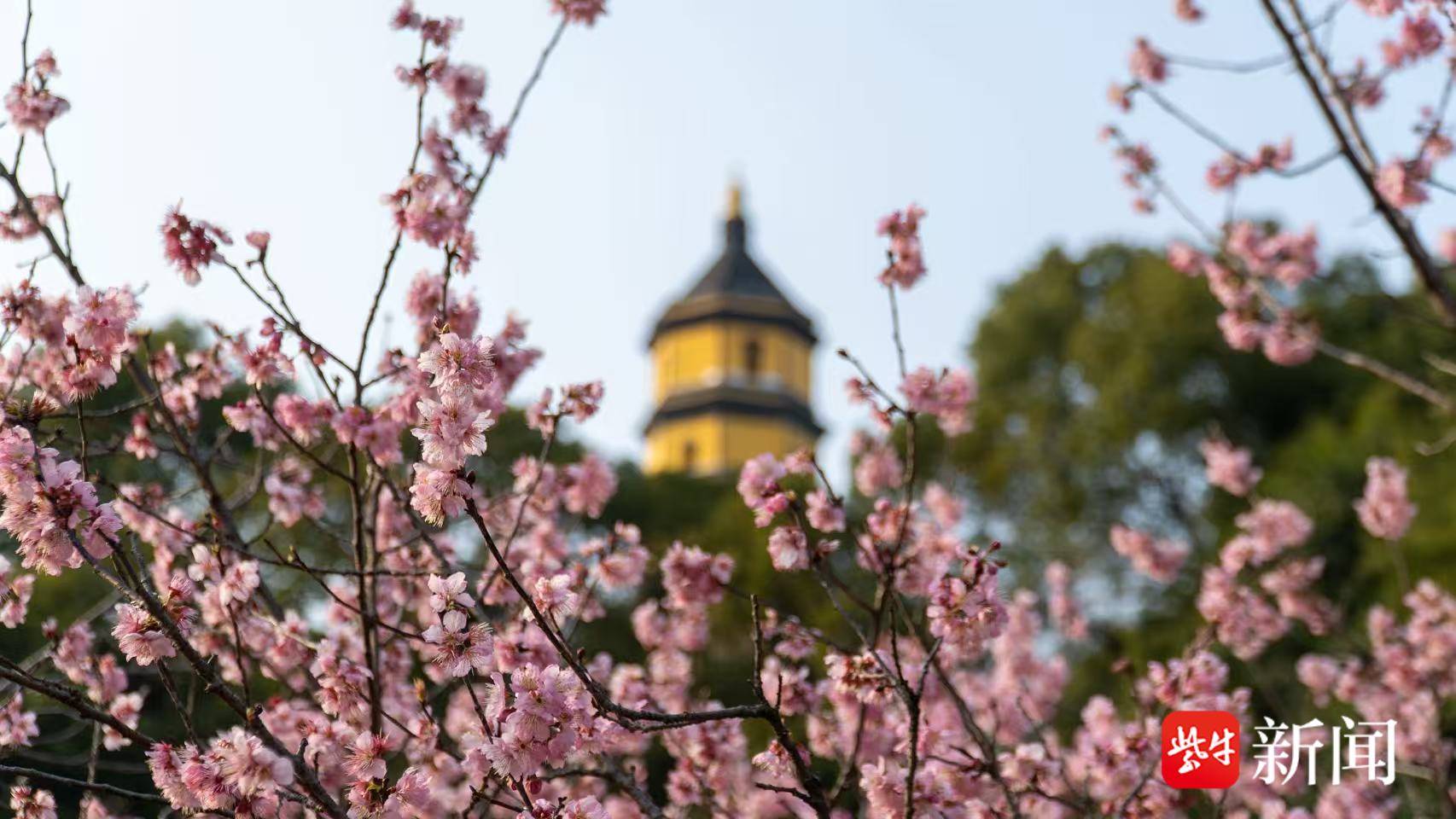 宝塔映繁花,镇江宝塔山公园梅樱同春入佳境