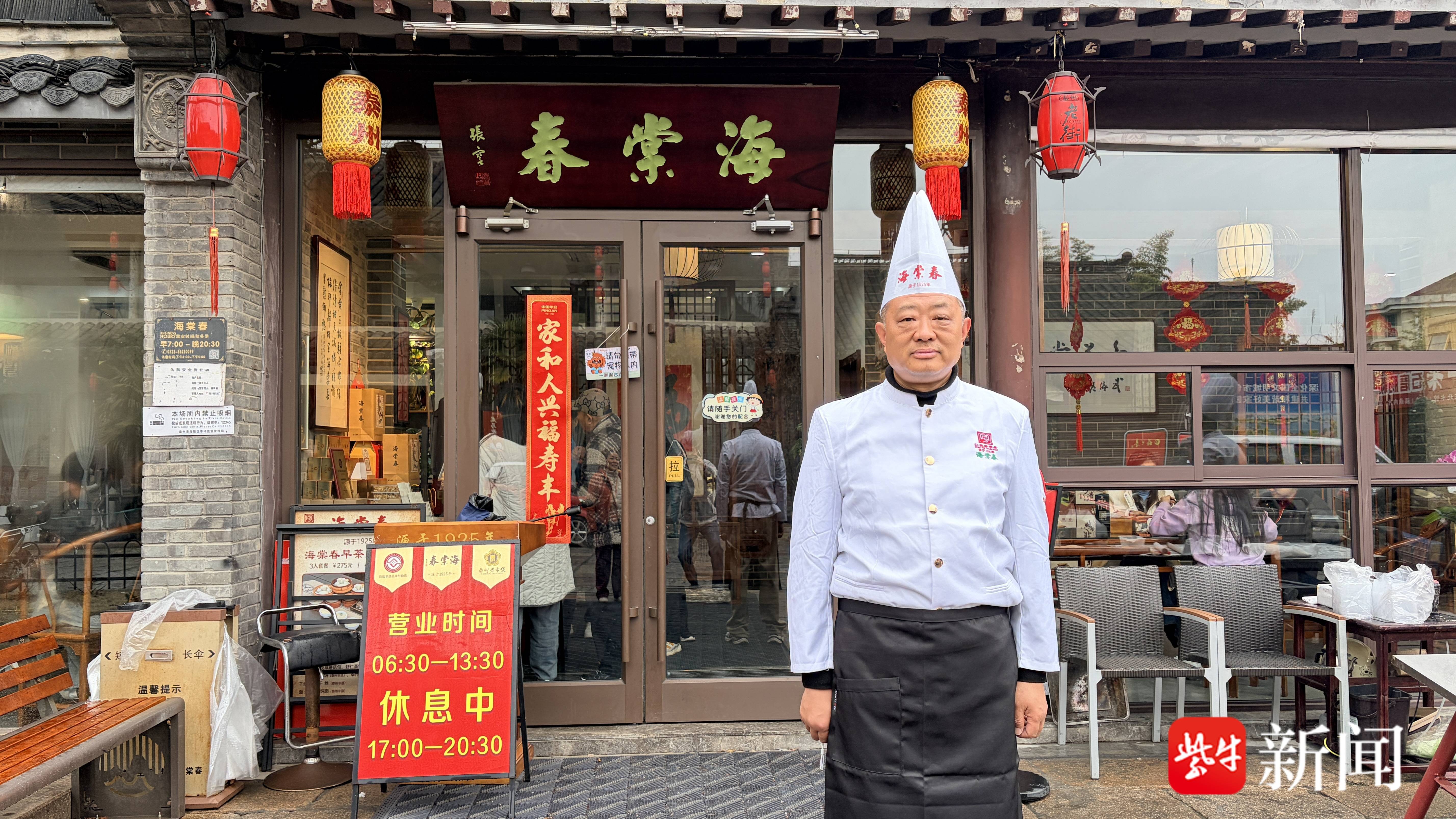 历经岁月沉浮,海棠春虽曾短暂歇业,但百年文脉与手艺得以传承。2016 年,袁海峻毅然复业;2020 年,门店进驻泰州老街,让这缕百年烟火气重焕新生。“既然选择了,就一定要做好。” 袁海峻告诉记者,这份代代相传的家训,是家族 “小家” 的坚守,更是守护泰州早茶本味的初心。