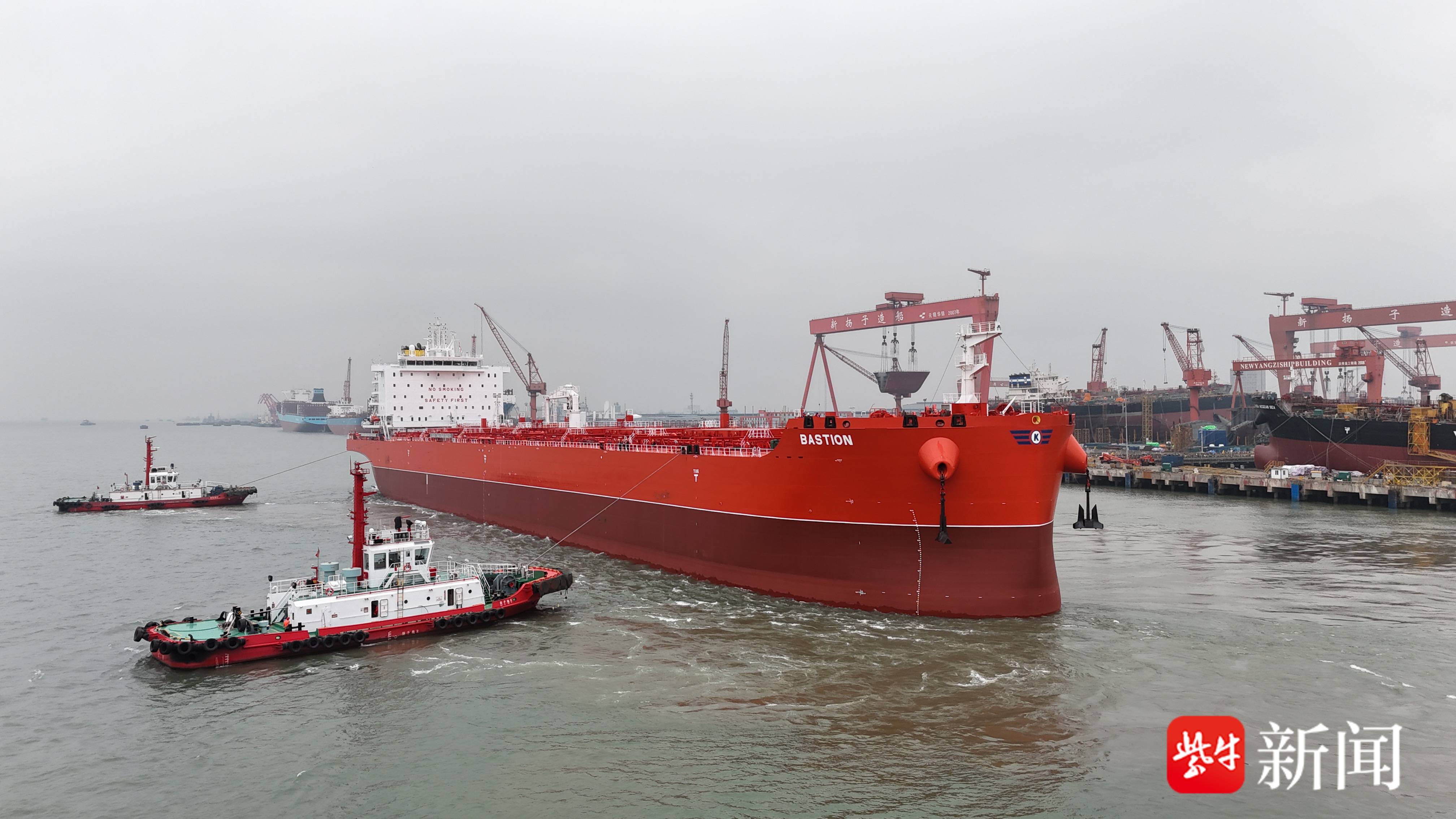 “新扬子539”,是烧碱和散货混装两用船,总长228.4米,型宽34.8米,型深20.9米,水面以上最大高度39米,凭借稳健的船体设计与高效的航行性能,未来将投身全球大宗商品运输领域。