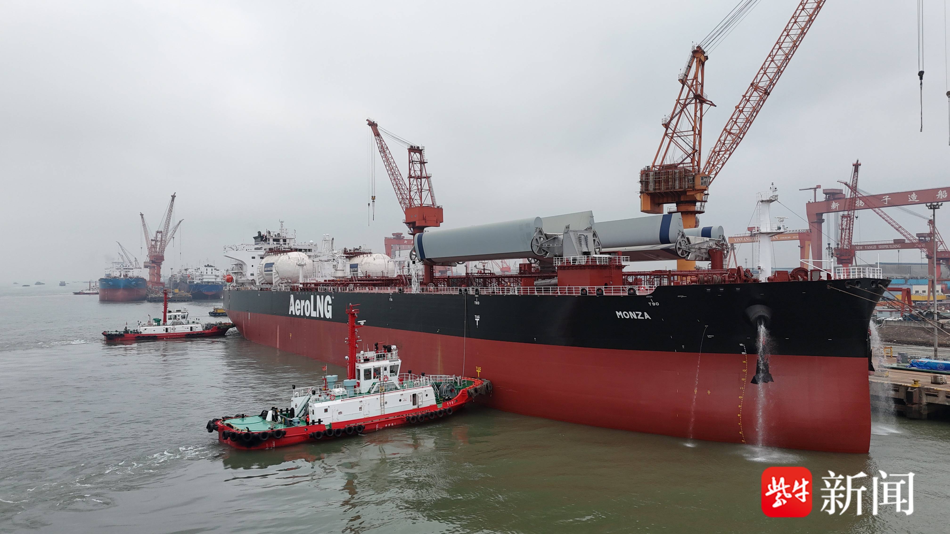 “新扬子538”,是全球首制的11.4万载重吨风力辅助推进双燃料油轮,在风帆有效运行中,日均可节约5%—10%的油耗。总长248.8米、型宽44米、型深21.5米,水面以上最大高度达40.05米。
