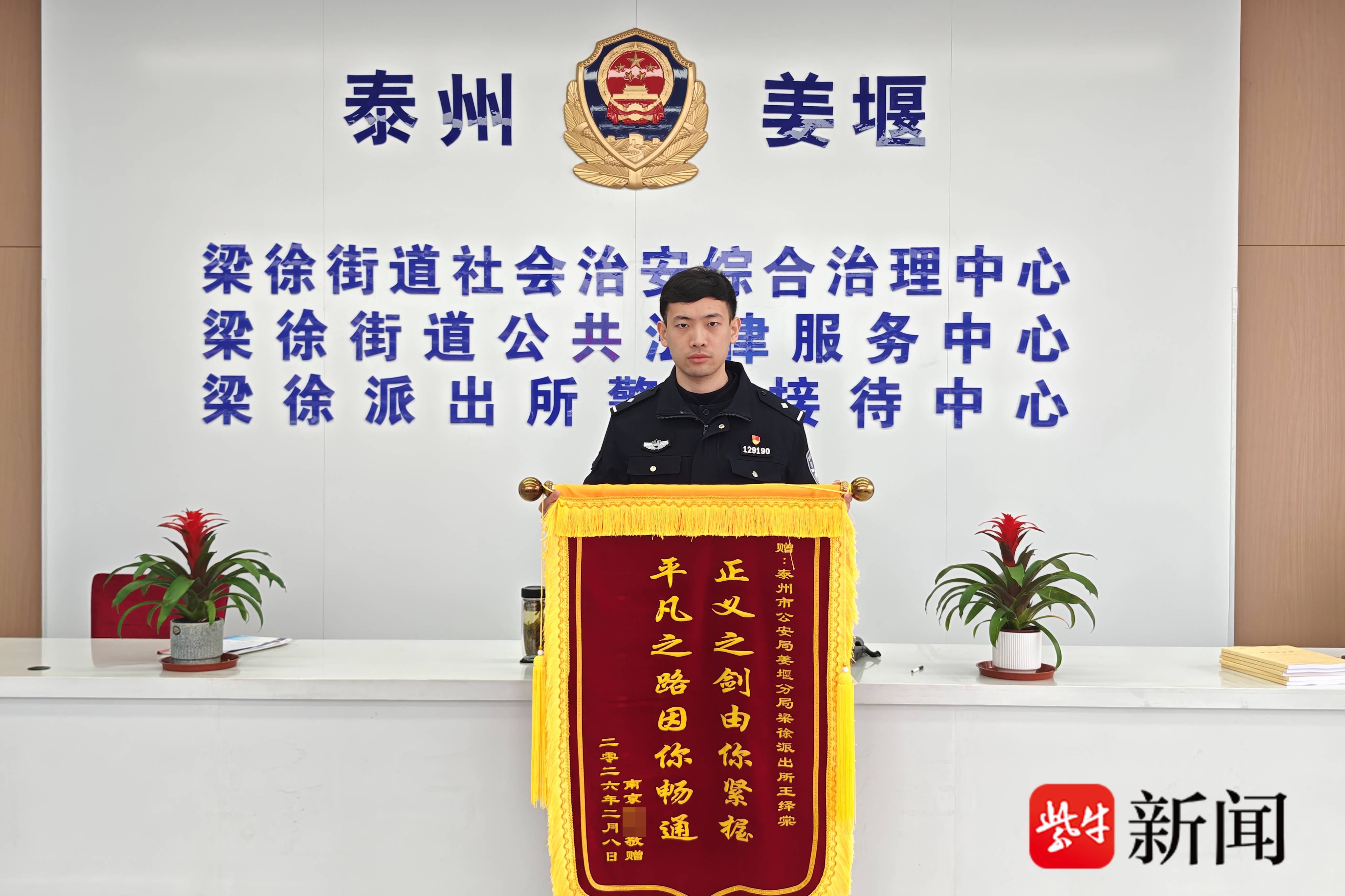扬子晚报网3月6日讯 (通讯员 唐钰 王小明 记者 王国柱)3月2日下午,泰州市公安局姜堰分局梁徐派出所民警王绎棠收到南京市民华先生寄来的“神秘包裹”,打开后竟是一面崭新的锦旗。这面鲜红的锦旗上,“正义之剑由你紧握,平凡之路因你畅通”的字样格外醒目,不仅传递了华先生的诚挚谢意,更是一场纠纷圆满化解的温暖见证。