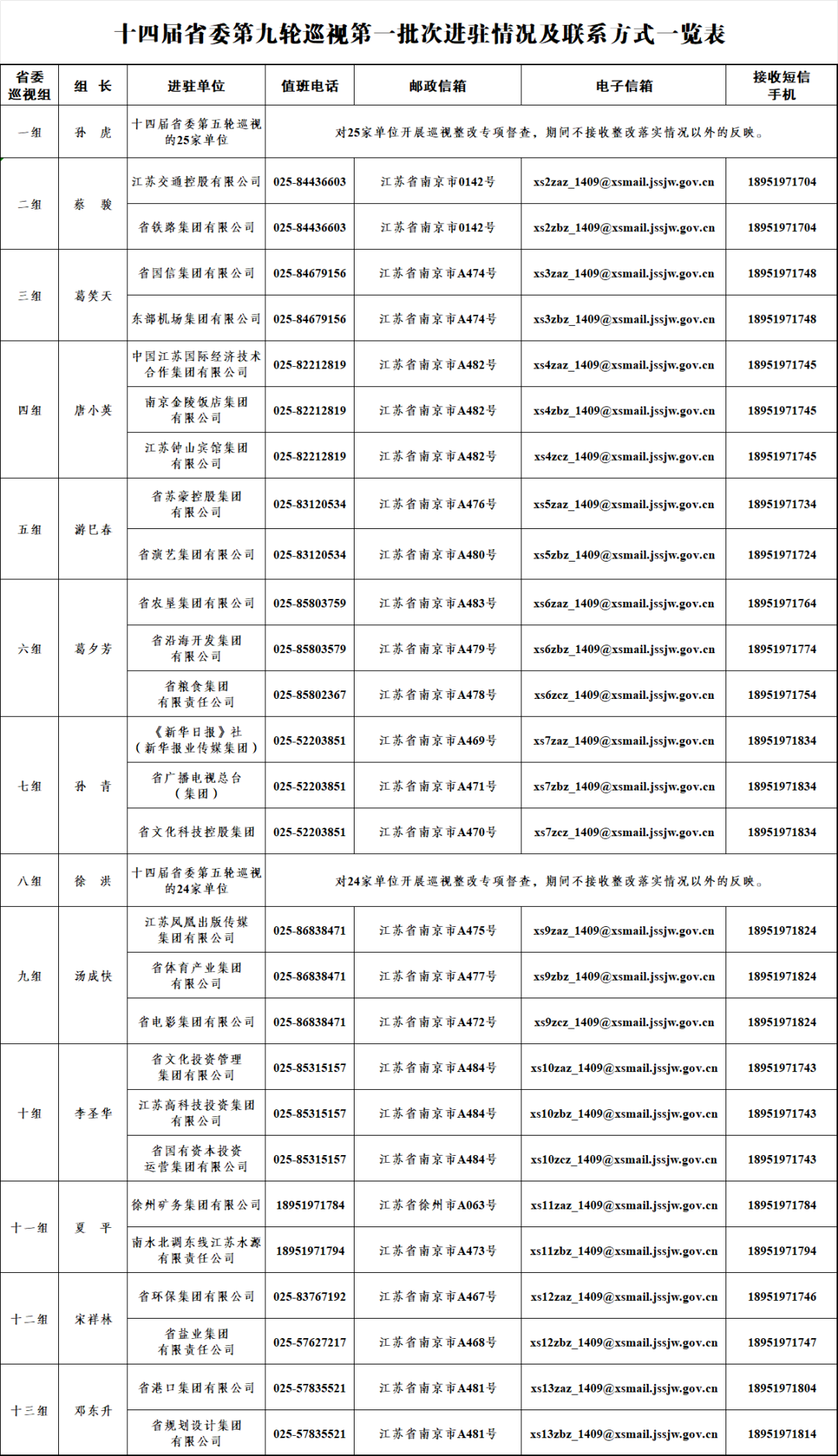 十四届江苏省委第九轮巡视完成首批进驻,附联系方式
