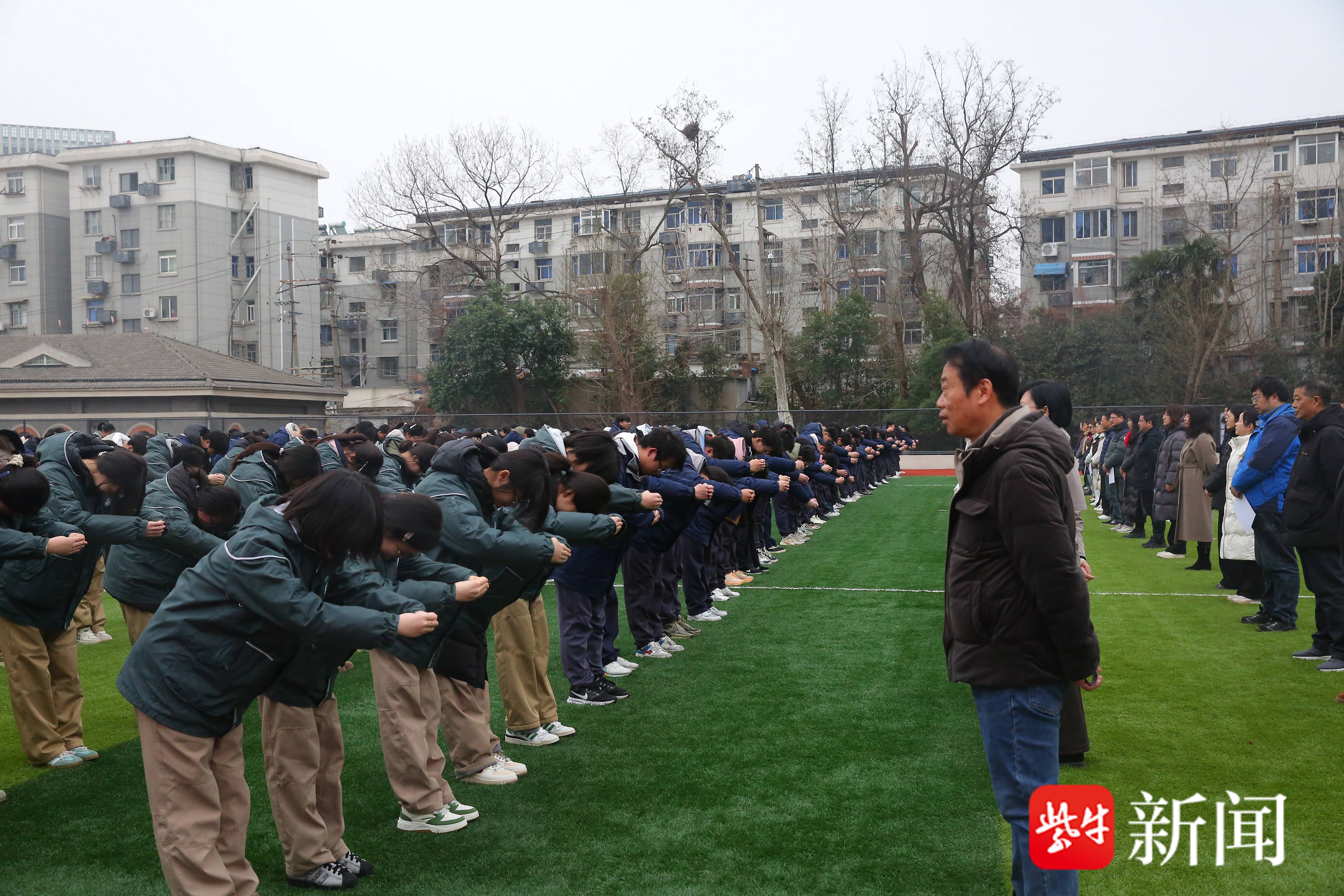 典礼尾声,全体学生面向全体教师整齐列队,以传统作揖礼向老师们致以最诚挚的敬意。同学们躬身行礼,动作庄重,饱含着对师恩的感恩之情,也传递出新学期不负师望、勤学笃行的坚定决心。这一传统礼仪,既彰显了崇实学子尊师重道的优良品格,也让整个开学典礼在庄重中更添温情与力量。