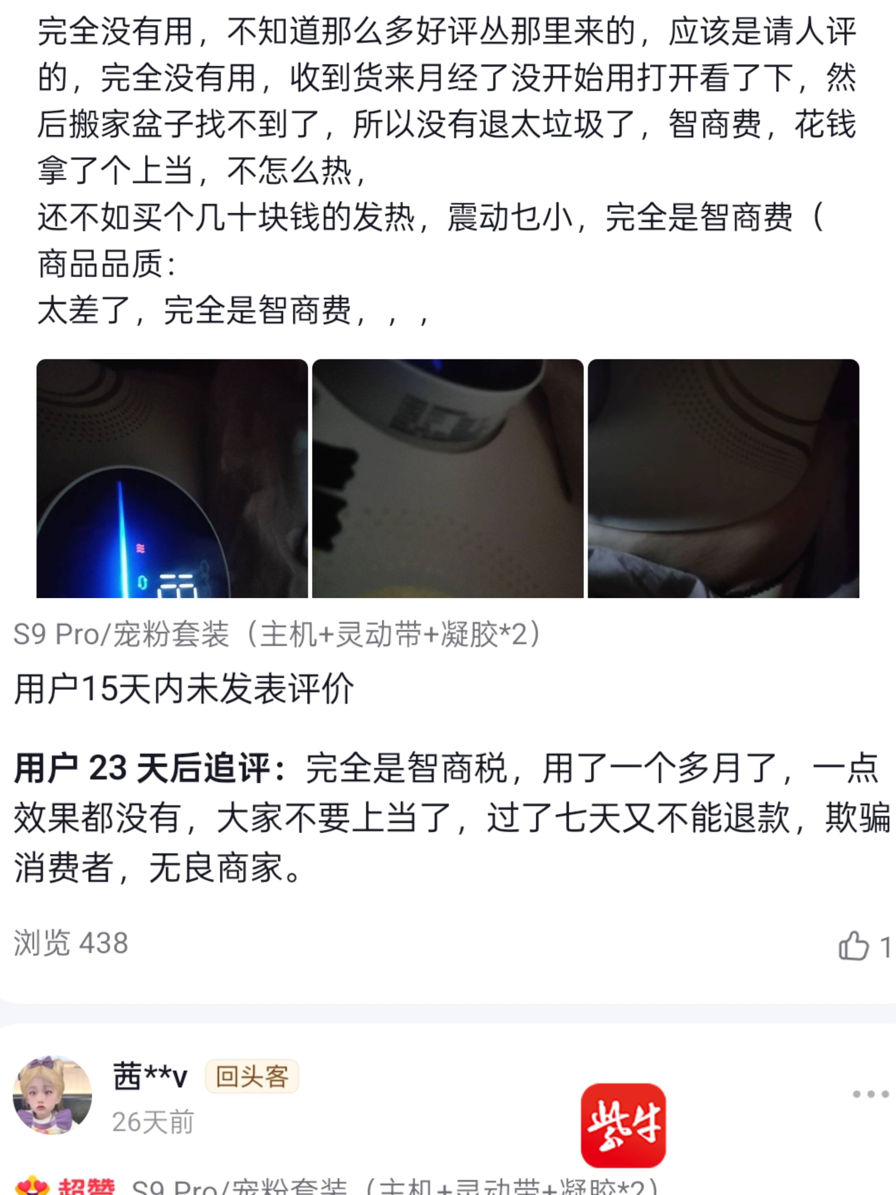 在商品详情页中,美塑仪被描述为“懒人塑形黑科技”,宣称集电流脉冲、按摩、热敷等功能为一体,能解决产后妊娠、腹直肌脱离、腰腹曲线模糊、腰酸背痛等核心困扰。记者翻阅产品评价发现,页面充斥“减肥奇效”“一周肚围变小”等五星好评,差评近乎绝迹。但细看评价内容,部分好评末尾暗藏“毫无效果”“纯属智商税”的真实反馈。