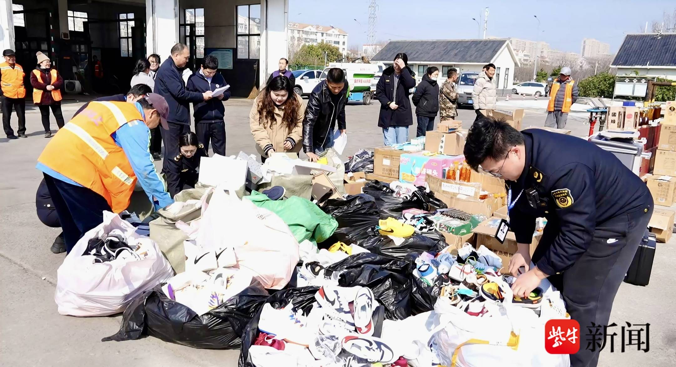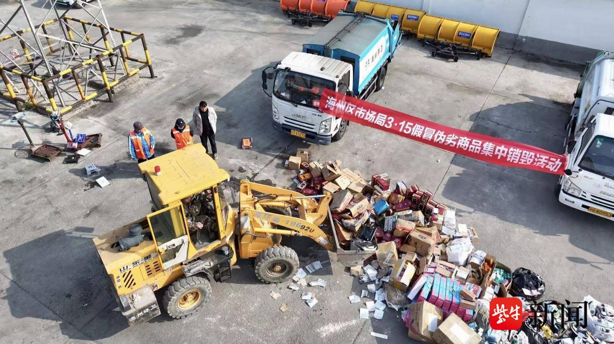 3月12日,在连云港市海州区绿化养护管理一处的空地上,挖掘机的轰鸣声不绝于耳。在机械臂的反复碾压下,一批批假冒伪劣商品被彻底粉碎,随后被送往无害化处理车间。